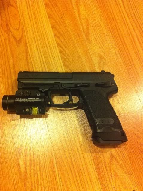 Duty Weapon H&K USP .40 H&K Jet Funnel Kit H&K USP Expert 16rd Mag Surefire MR09 Tach-light rail Streamlight TLR-2 Weaponlight Golden Saber Hollowpoints http://img.photobucket.com/albums/v2...k/93162e4e.jpg |