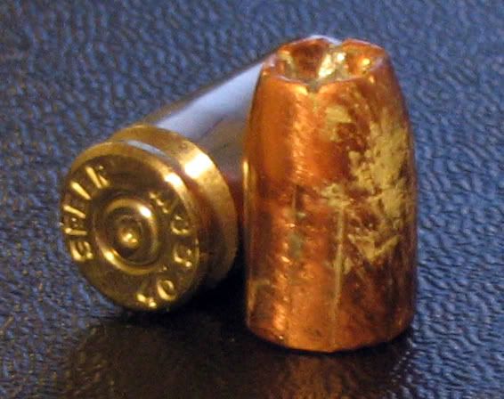 Today I got a chance to shoot at some water jugs with some old clothes covering them and I had four rounds out of five fired get clogged with fabric and fail to expand. One got clogged going through 3 t-shirts and two got clogged going through one layer of denim jeans. One I shot through a thin piece of wood paneling and then into the water and it too failed to expand. I know that certain "law enforcement" rounds are designed to delay expansion when shot through semi-solid objects, but to not expand at all? I don't know about that. Sure it's not the most bulletproof (lol) ballistics test ever performed but I'm definitely a little pissed that I've been carrying possibly ineffective and therefore dangerous rounds every day. I've been practicing my Google-fu the last hour or so and I've found some issues mentioned, but no more than any other brand. For now I've switched back to the HST Tactical in both carried mags. They've passed the same test many times and I've collected the flower-petaled rounds from the broken jugs. I only switched them out because I had severe denting issues and it made me a little concerned with the thought of relying on overpressured and maybe misshapen rounds. That was only after the advice of some smarter-than-me ballistics pros. Anyone have any thoughts on the matter? The only one I managed to hang onto was the one fired through wood. It didn't even break the jacket perforations, it just dented the one side. The white smudges are probably the white paint the wood had on it. I already picked out the wood that clogged it up, probably should have just left it there. lol. oops. Here's that one: http://i59.photobucket.com/albums/g2...dintexpand.jpg |