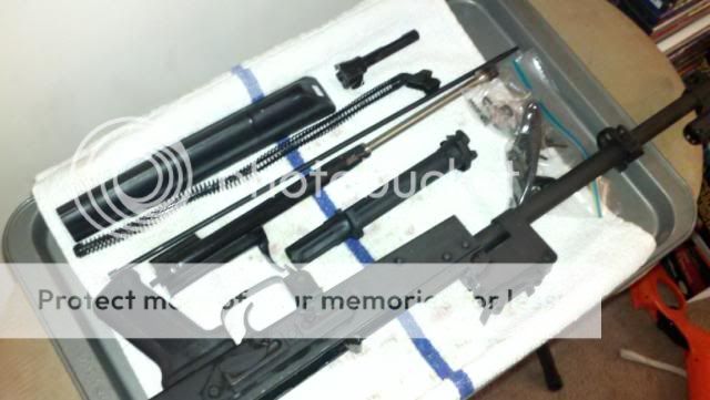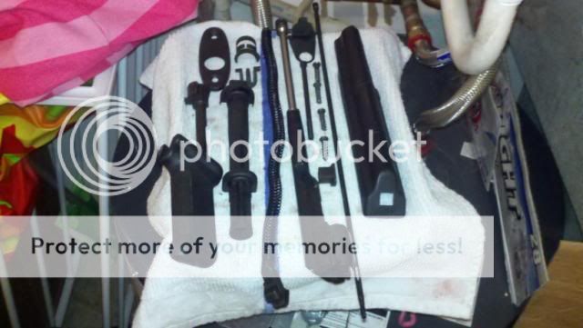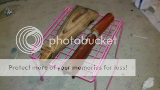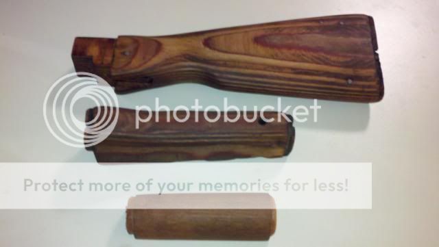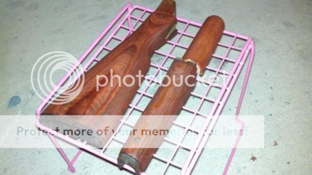 How she started: http://i478.photobucket.com/albums/r...rms/fullak.jpg disassembly begins: http://i478.photobucket.com/albums/r...ms/akparts.jpg[/QUOTE] removed all the wood (this pic is pre-work) http://i478.photobucket.com/albums/r...recleaning.jpg getting the commie grease and dirt off: http://i478.photobucket.com/albums/r...ngstripped.jpg Parts drying after being Gun Scrubber'd http://i478.photobucket.com/albums/r...eBarricade.jpg the hardware drying after being gun scrubber'd http://i478.photobucket.com/albums/r...escleaning.jpg The Lower is now SPOTLESS (i wish i took a before pic, she was disgusting) http://i478.photobucket.com/albums/r...wercleaned.jpg Post gun scrubbing with barricade applied: http://i478.photobucket.com/albums/r...barricaded.jpg after paint stripper, steel wool, hot water and an oven a before and after (3 coats of stain 7 more to come and then clearing it) http://i478.photobucket.com/albums/r...s/Wood5050.jpg everything gets stained! http://i478.photobucket.com/albums/r...atsofstain.jpg coming back together (somewhat) still waiting on parts: http://i478.photobucket.com/albums/r...cktogether.jpg I should be finishing the stock tomorrow. |