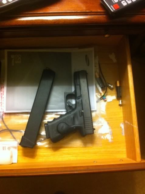 I wish my nightstand had drawers so I could put my 33rnd mag in there. Sadly it's just all glass shelves.