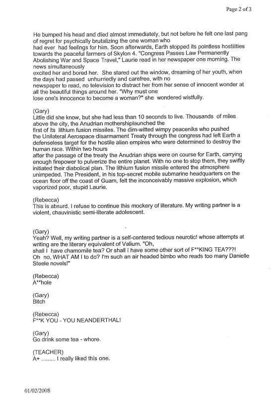 That teacher is definitally cool. A sick twisted assignment I must say, but quite a knee slapper