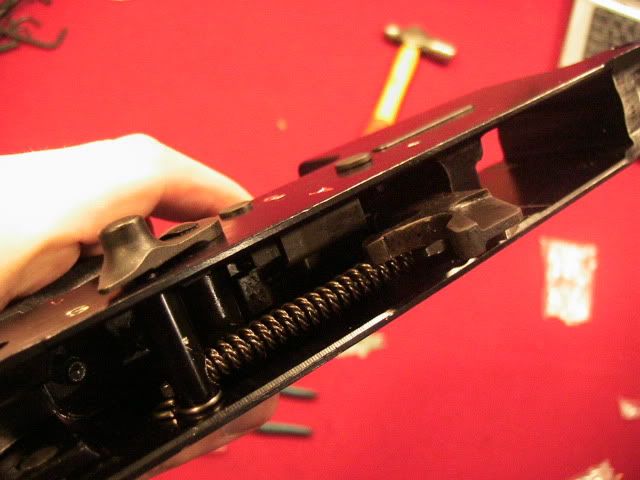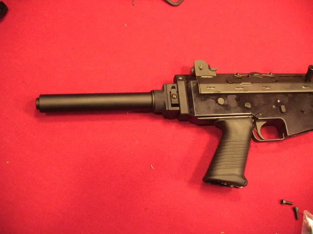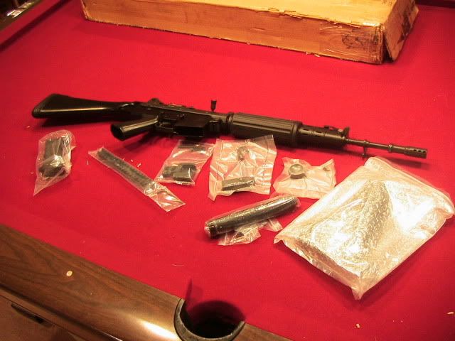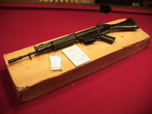 Unfired with original box http://img.photobucket.com/albums/v2...k/IMG_1478.jpg http://img.photobucket.com/albums/v2...k/IMG_1479.jpg http://img.photobucket.com/albums/v2...k/IMG_1481.jpg http://img.photobucket.com/albums/v2...k/IMG_1482.jpg Since I can never leave well enough alone and stock hurts my body certain additions must be made, the FNC is a very nice rifle for some in stock form but to my liking it needed to be updated http://img.photobucket.com/albums/v2...k/IMG_1480.jpg Made a visit to Stormwerkz and picked up Joshs sight rail, stock adapter and universal folder, also picked up a M249 SAW grip from DSArms and got a Magpul UBR stock to sit on the back. Still waiting for my railed foregrip to ship. http://img.photobucket.com/albums/v2...k/IMG_1486.jpg http://img.photobucket.com/albums/v2...k/IMG_1487.jpg http://img.photobucket.com/albums/v2...k/IMG_1488.jpg http://img.photobucket.com/albums/v2...k/IMG_1489.jpg http://img.photobucket.com/albums/v2...k/IMG_1490.jpg http://img.photobucket.com/albums/v2...k/IMG_1491.jpg Also got a 3 round burst pack, having a "3" position on my selector and not having it functional is just not cool so that too must be remedied If you have a FNC and want to do this addition fear not its extremely straight forward and took me about 5 minutes to install with function check Kit comes with these 4 pieces, the burst assembly, hammer spring, burst pawl and pawl pin http://img.photobucket.com/albums/v2...k/IMG_1493.jpg Lower comes off just like an AR http://img.photobucket.com/albums/v2...k/IMG_1494.jpg Hammer goes to 12 o'clock and out from right to left http://img.photobucket.com/albums/v2...k/IMG_1495.jpg On non burst pack installed rifles there is a metal piece to keep internal dimensions where the pack would be, just slide it up and out http://img.photobucket.com/albums/v2...k/IMG_1496.jpg Hammer spring comes out and hammer pin comes out right to left then the hammer just lifts out http://img.photobucket.com/albums/v2...k/IMG_1497.jpg Hammer spring goes on http://img.photobucket.com/albums/v2...k/IMG_1498.jpg Burst pawl goes on, make sure the tip of the pawl is facing rearwards to it can contact the burst pack, if you do it backwards the pack wont fit in. http://img.photobucket.com/albums/v2...k/IMG_1499.jpg Pawl pin goes through the pawl into the hammer http://img.photobucket.com/albums/v2...k/IMG_1500.jpg Reverse the order, hammer goes in alone with spring http://img.photobucket.com/albums/v2...k/IMG_1501.jpg Burst pack drops in, selector goes through left to right http://img.photobucket.com/albums/v2...k/IMG_1503.jpg Making sure through all this taking apart and putting together a round didn't make its way into the chamber, do a function check. Set the selector to position 3, charge the weapon and pull and hold the trigger, cycle the bolt for "3 rounds" you will hear the sear catch on the 3rd round if you did everything correctly. If you rifle is back together smoothly to this point you have done everything right it WILL NOT fit back together it parts are in wrong. Now its a battle rifle http://img.photobucket.com/albums/v2...k/IMG_1492.jpg |