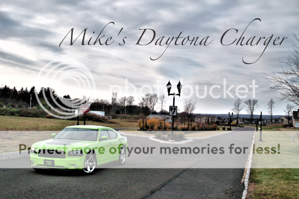 So i traded my DUB Charger for this '07 Dodge Charger Daytona R/T in Sublime Green. I traded my car and purchased this tonight at Car Sense in Jersey. The car has 14K miles on it and the price was $25K. they appraised my DUB at $14K and i dont even have to fix the dent in the door. Most likely ill be keeping this car stock especially the exterior with maybe a few very little changes. Performance upgrades will be a definite with this car though starting with a new exhaust system. Some features of the car include: 350HP 5.7L Hemi V8 Sublime Metallic paint 20" chrome clad wheels 1304 of 1500 badge Flat black Daytona stripes Flat black spoiler heated leather/suede seats Sunroof Color matched interior accents and more... Some future mods for this car: Flowmasters Dual Exhaust -DONE aFe Intake - DONE Billet Tech Engine Kit Mopar hood struts -DONE Mopar strut covers - DONE Arrington Ported TB DiabloSport Predator - DONE Kooks Headers 180 T-stat Custom painted tail lights - DONE Sublime painted corners - DONE Vossen CV3 20x10/20x12 Resonator delete - DONE Eibach Sportline Lowering Springs Spacers Spoiler delete Roof spoiler 20% tint all around - DONE |
