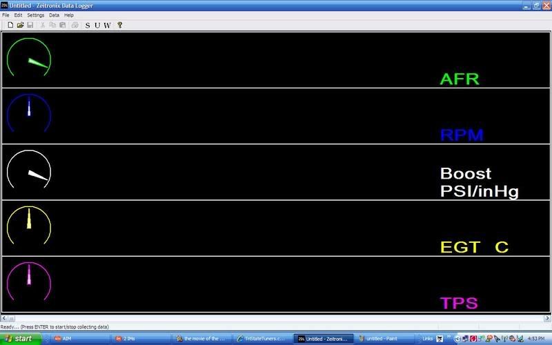 I stopped tuning tonight just to come inside for this. I want to express complete satisfaction with Zeitronix's tech support. I bought a serial to USB adapter tonight so I could use my new laptop to tune with. The zeitronix and greddy emanage both use serial outputs. I installed the cable and the greddy worked right away. I went to do the same with the zeitronix and I had no data. I emailed them and within 5 mins (it could have been less but I checked my email 5 mins later) someone had replied to my question. The answer didnt solve the problem but after 10 or so emails later we had figured out that a different cable that I was using (not the usb/serial thing) was the issue, it was my fault the entire time. The zeitronix wideband controller is an amazing device. It logs tps, rpms, afr, boost, egt, and a user selectable input. This is what a log looks like: http://i37.photobucket.com/albums/e7...nstuff/log.jpg All of these plots can be seen as they are or they can be placed ontop of eachother for more detailed tuning. They also offer an LCD display that acts as a guage for the wideband. I reccomend this wideband to everyone who needs one, it is handsdown the best. Even if it WASNT the best the tech support would make up for it. Happy Tuning! -pete |
