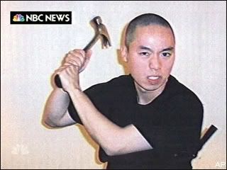 http://i172.photobucket.com/albums/w...Cho_hammer.jpg i knew they would compare it to this movie http://i172.photobucket.com/albums/w...dboy-thumb.jpg as well as this http://i172.photobucket.com/albums/w.../cho_movie.jpg its from a korean movie "oldboy" for those of you who havent seen it i recomend it. i own 4 copies at this point ( bootleg, legit, special edition, and super special edition with film cels and all that other crap to make a dvd $60) this pisses me off cause now a movie that has been a favorite of mine for years may come under fire like like other scapegoats like the game doom or any marylin manson record did in other school shootings. i know the killing and killer are being discussd in other threads but i wanted to start a new one to see who among you thing that violent games and movie and music drive people to do this. i know the shooting and the killer are being discussed in other threads but i wanted to open up thread here to see if any of you think there is a link between violent movies and real acts of violence. i agree with some correlation between the two, for instance i used to be able to wank to playboy, now i need hd dvd, four chicks, several power tools, a big screen tv and about 45 minutes of spare time :eek: i think that when you are inundated with violence or anything for that matter its going to take more the next time to make you have that same feeling. what i cant stand is the people who are so close minded, (this happens alot with certain special interest groups or tv show hosts), that they ignore 90 other factors and social issues that leads up to events like this. thoughts? please dont lock btw, i dont want this to be soley about this virginia tech murders. i know there is already a thread for that |