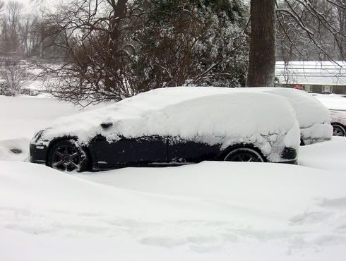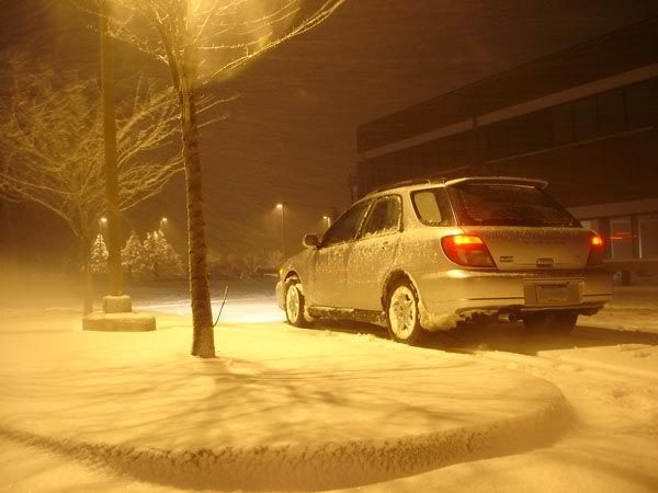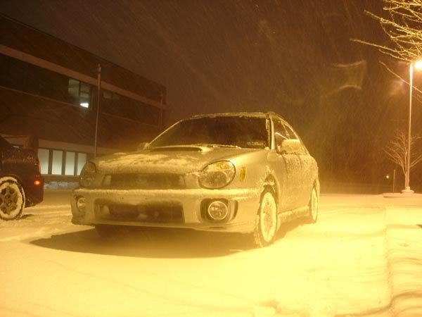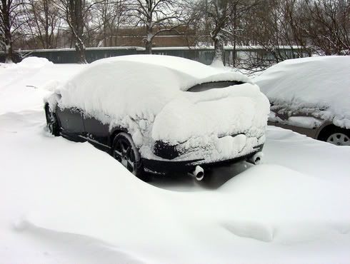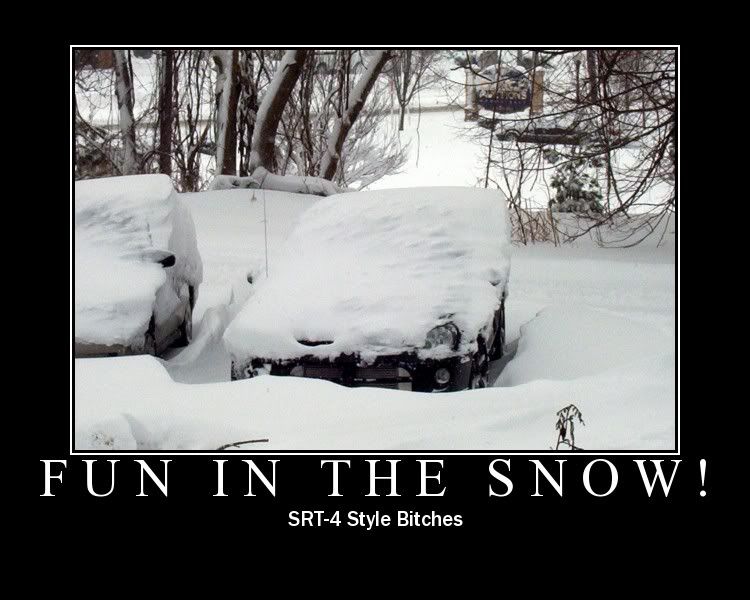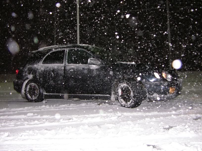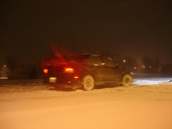 Well I spent the night at my friends house last night. It was snowing hard, but I thought it really wasn't gonna be much. Woke up this morning...had to dig my car out of a good foot, maybe more, of snow. That and I was on a downward slope into my friends driveway. I tore his yard up a little bit ( a lot) trying to get out LOL. I just covered the rut with some snow. ;) But after I got out and went driving, oh MAN that was SOOOOOOOOOOO much fun. Granted I was only goin like 25-30 tops, it was 25 or 30 goin sideways. :D lol. I almost got stuck a few places though.