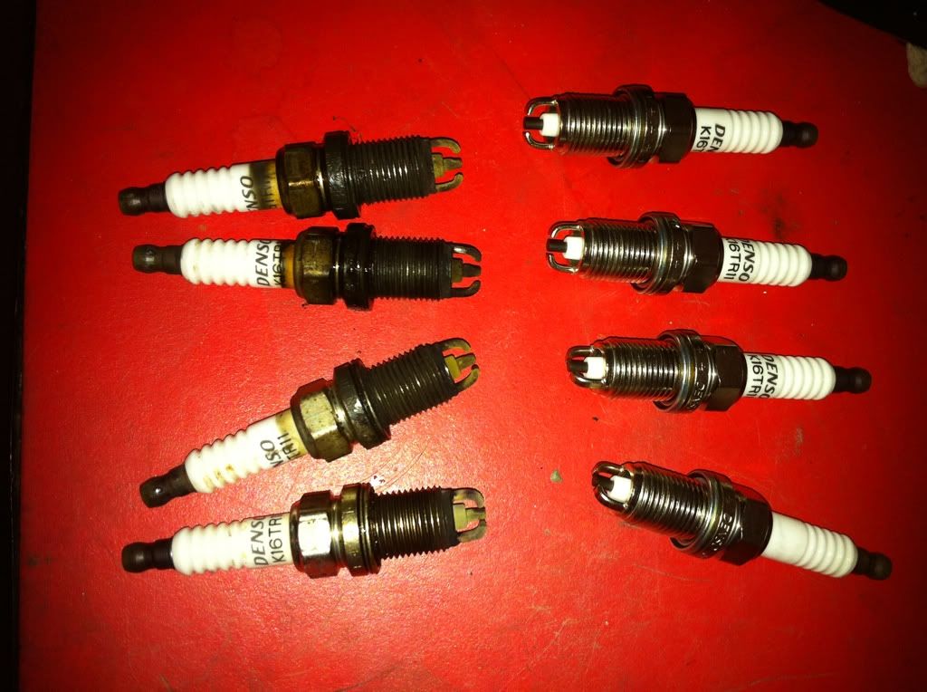 Car is eating spark plugs for dinner. The engine had a slight stumble every once in a while so i figure pull the plugs out and see whats up. this is what i found Plug 1 ![]() plug 2 ![]() plug 3 ![]() plug 4 ![]() and what they used to look like ![]() and i figure since i had to take it off, clean my StrutBar up a bit Got TRD? ![]() all done ![]()