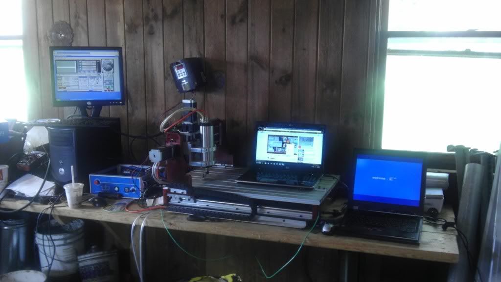 So I was browsing on Craigslist... and I found a Chinese 6040 CNC router for sale in Jersey. Picked it up for a good price, but stupid me didn't have them run it for me... I could have gotten a better price on it, since it BARELY ran! (3 computers...Nerd status while trying to fix this!) ![]() I thought maybe it was the motors, so I replaced them with the 425 oz. steppers I purchased for my build. Still didn't run. So I decided to open up the control box and check things out. The breakout board looked good ![]() Stepper motor drivers... Hmmm lets get a closer look at these! ![]() Ohhhh! Maybe this is the issue! ![]() I was reading that there have been so many issues with these blue box controllers, so I decided to rip everything out and start fresh with the parts I bought for my build. Thank goodness I got all this stuff previously! ![]() I replaced the power supply, breakout board, and stepper motor drivers. It took me awhile to get everything sorted out, but I did my research! Lots and lots and lots of hours spent "googling". Mind you I have absolutely NO training in robotics or electronics. I have the basic understanding of electricity from working on cars but that's it! The internet is such a wonderful fountain of information... SO USE IT! So anyways... end rant! After replacing all the control box components, I started her for the first time and got each axis moving. It took forever trying to figure out the correct motor tuning. I thought I could just follow the basic setup instructions, but I ended up learning all about stepper motors & how they work. I'm glad I did, because it gave me a greater understanding on how the entire system works. Once I got the motors tuned it so they moved I ran a test file through Mach3http://s1209.photobucket.com/user/ni...1d28d.mp4.html Then I calibrated each axis to +/- .0005" and loaded a scrap piece of wood for testing. This is the final result after the first run with a scrap piece of wood I had laying around. ![]() So pumped to start more projects!
