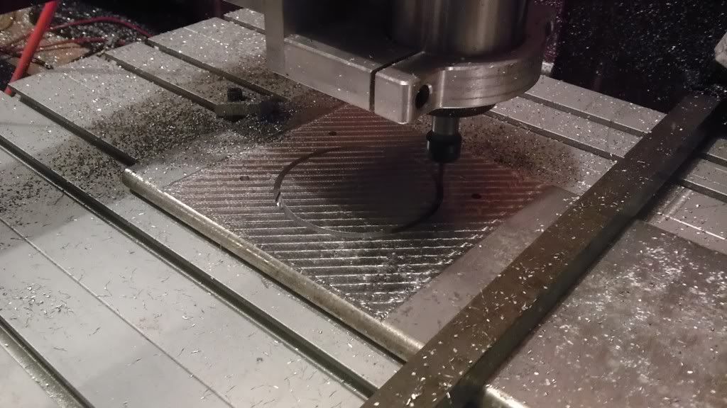 I've invested about $200 in a ton of different tooling. Which isn't a lot but now I've gotten a good range of tools. I ordered a bunch of engraving stuff from china, and actually the quality is great. I started out with a 1/4" end mill for aluminum @ 20k RPM w/ a cutting depth of .040" and 10 IPM. I found that it was cutting wayy too much material, and my little machine wasn't sturdy enough. The surface finish sucked!!! I dropped down to 1/8" end mill and now I'm able to cut at 30 IPM (Inches per minute). I really need to get a mister/compressed air setup to keep the tool lubricated and free of chips. Here are some pictures! My first real project! 1/4" Aluminum Circles that get powdercoated and fastened to a window... don't ask lol architects are strange birds... ![]() ![]() Cutting out an LS7 throttle body flange for use on the Nissan Titan Intake Manifold I'm working on. This is where I switched to the 1/8" end mill and I'm having fantastic results with the surface finish on the edge. ![]() ![]() This is the upper plenum flange for the VK56DE intake manifold. The machine doesn't like when computer decides to start the screen saver. It made an oops on the bottom side, but live 'n learn. Also I have to make sure that all other programs are closed while running the machine. There can be interference and mess things up. ![]() ![]() ![]() ![]() ![]() And this is the design of the intake manifold that I'm going off of. Hopefully it'll turn out somewhat similar! :P
