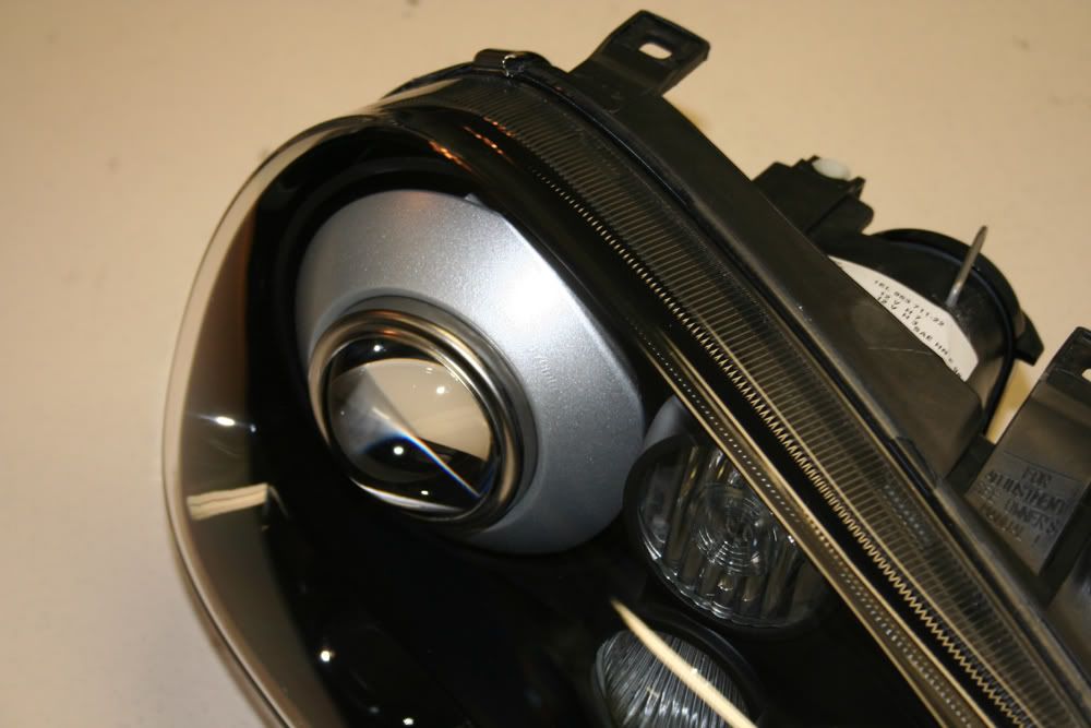 The reflector was painted black (except the high beam area) and the e90 shroud was painted hyper silver to give it that factory look. A hole was made in the rear for the ignitor to reach the bulb....talk about the ultimate OEM Setup! Tan actually tried to do this himself. This project wasn't easy for us either... The spacing of the projector is cruicial so nothing rubs in the inside of the lamp, and finding the right shroud was just luck actually, we had one set here! It came together really nicely in the end... ![]() ![]() ![]() ![]() ![]() ![]() ![]() ![]()