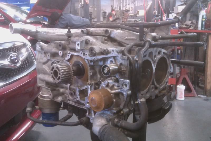 Hopefully a new block... I have rapid oil consumption and a knocking noise at idle and at speed. So I decided to strip the car down back down to stockish and try my luck at a dealer for a fix. If they do nothing, then I'll toss my suspension back on, wheels and brembo's and look good till the motor blows lol.