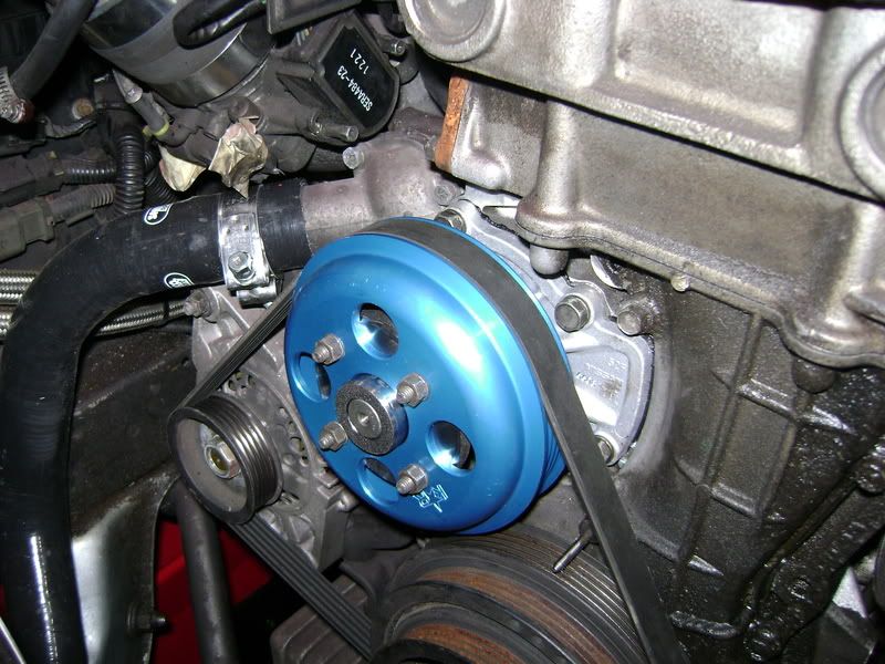 So summer is coming and there is no way better to pop an SR than with overheating. SR designers messed something up when they designed the water pump for this otherwise pretty flawless motor. When you run high RPM's the water pump spins to fast and makes little tiny bubbles in your coolant.Heat from inside the head then soaks these bubbles easier than water/coolant and raises coolant temps. So get with these Pulleys and beat the heat. Here are the features. # 6061 aluminum # Designed using state of the art Cad processes # Model based off OE Pulley # 8% larger than stock # Retains use of OE belt # Hard Anodized Blue and the money shots! ![]() ![]() Price is $120 come and get em! |