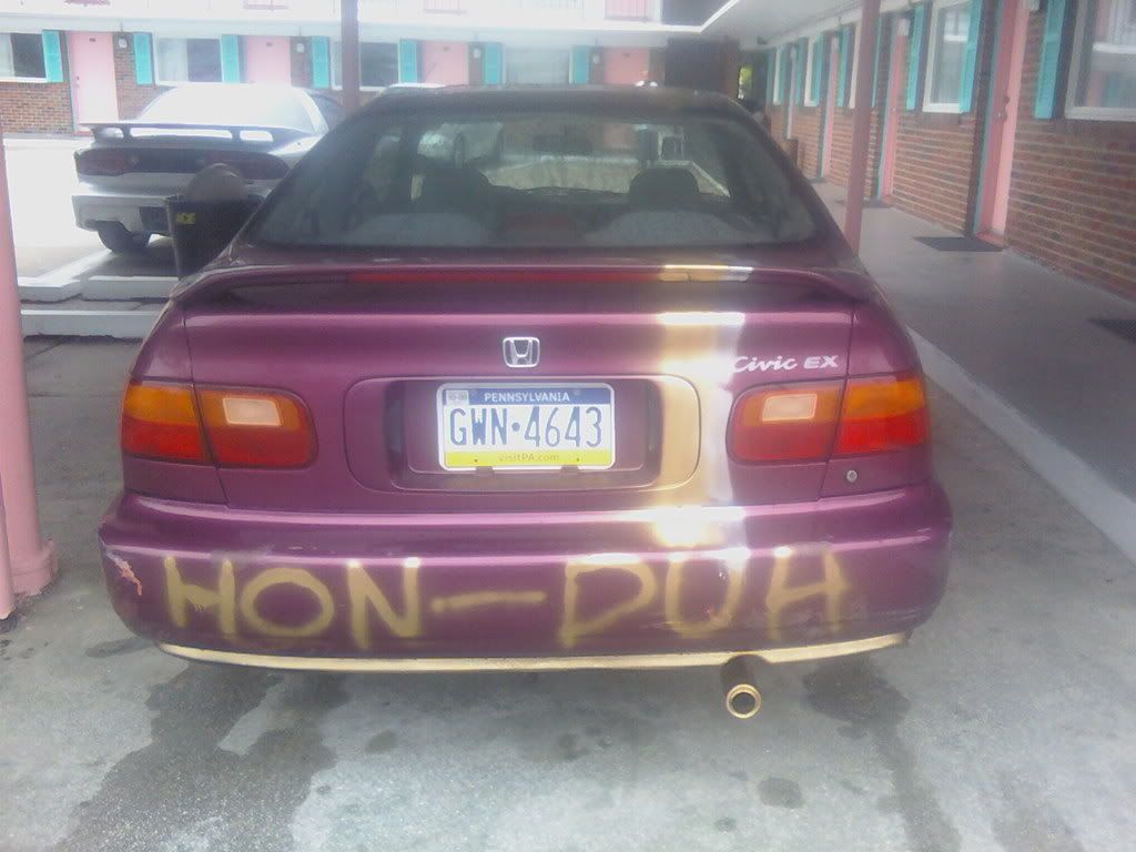 Notice the trash can on the top of the car in the first two pictures, that was from the night before when we were all drunk and my friends were mad that i was the only one that found a girl to get back to the hotel. |