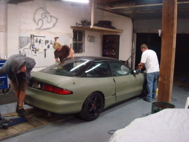 this car qualified so i went to wal-mart as they have it at the cheapest price. I bought a total of: 11 cans of Green Dupli-Color Self-Etching Primer 2 cans of Rustoleum Satin Black I did basic prep work so the paint would adhere well, and light body work, but I'm not looking for perfection so I spent little time on that. then, myself and several friends taped off the important stuff, painted the bottom of the car with the green primer. and the roof with the satin black. after that "base coat" was applied, I dug into my personal collection. I always have clear coat around for misc. paint projects I use a U-tech brand clear, with a slow activator. It took a total of about 2 quarts to clear coat the car. this is a professional grade automotive clear coat sprayed with a quality paint gun However, U-tech clear costs just over $100 for a full gallon with activator. I used half of that, putting the clear cost at about $50, and the paint cost also around $50 Clear is only sold by the gallon where i buy it, so this job would cost that average person about a weekend's worth of grunt work, and $150 the only step different from your average rattlecan job is the clear coat process. I'm assuming that the fisheye and orange peel is from three things: 1: The primer is not really made to be clear coated 2: I didn't think to wipe the "base coat" down well before applying the clear 3: I sprayed the clear too fast, as I wanted to get done quickly. I did some wetsanding work onthe car, and it buffs out fairly well. However, the job is not showroom quality. I was in a rush in general, but if you would take your time, and prep all surfaces correctly, as well as spray the clear in a more professional manner (don't rush, do good prep work) your car could turn out much better... also the average guy would have half a galon of clear left over, it wouldn't hrut to wetsand the whole car and shoot it with a second coat of clear.,, or you can halfass it like i did and get two cars done if you're on a really steep budget and a friend wants in too. All you really need is access to a spray gun. and air compressor. this isn't a professional job, so just make sure you're using a well ventilated garage and that you don't have neighbors that will complain about the fumes... they do get strong while spraying and you should wear a mask. i'd suggest covering the walls with some cheap painters plastic so you don't get overspray everywhere... that'll als help with keeping dirt out, and dust down since you'll have a makeshift booth. Mine looks great for the money i have invested, and i'm satisified. But i'm sure with more effort and patience someone else's may turn out even better. I'd say if you're on a budget and your car has awful paint, this is a cheap way to step your car's look up a ton. I think that uisng the satin colors really helps to get a nice even coating with the rattle cans, it sort of evens itself out, and as long a you get good coverage it dries very evenly. This was the same for the black and the green. I may have missed some details. If you'd like me to do a more "clear" write up with better explanations of supplies and what not to post in the general auto section i'll be happy to. This was a "maybe this will work" idea, and it did so it'd be great to see others benefit from it as well. i wonder what the red primer would like like clear coated? or even grey?