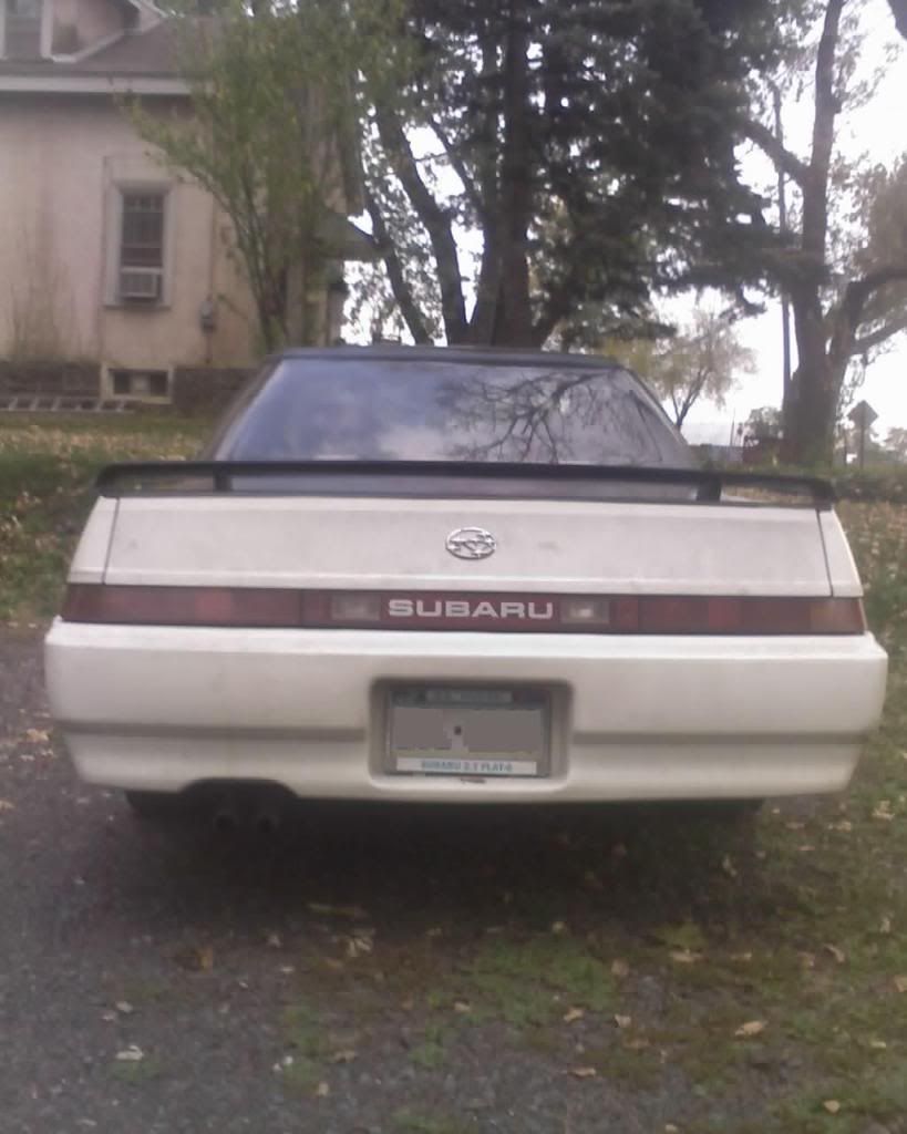 I don't have too much done to the car, but it is fairly unique amongst XT6's. It started life as a FWD automatic, but the guy I bought it from swapped it to a stick, making it only the second FWD stick 6 cylinder in existence. I picked up a crate engine a while back with only 30k miles on it pretty cheap, and dropped that in, adding a cone filter at the same time. I've got a spoiler from an 80's Firebird on it, and I painted the car to mimic the Subaru SVX's, black over white. The sealed beam headlights sucked, so I grabbed a H4 conversion online for those. I've got KYB GR-2 rear struts, and plan on getting fronts, as well as a coilover kit for them. Eventually I'll get a set of 15" or 16" rims for it, probably go with a set of newer Subaru ones. |