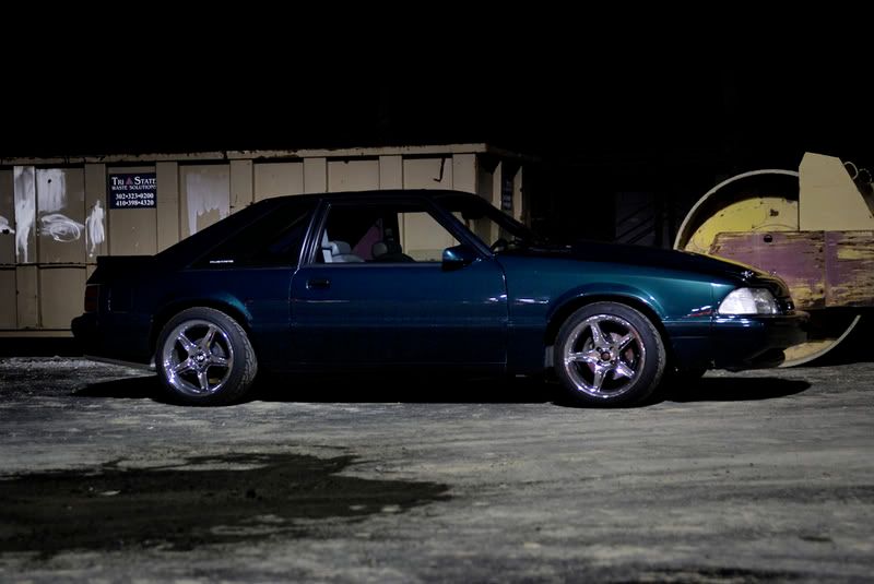 as of right now it has edelbrock heads, cobra intake mani, ford racing F cam, long tubes, off road H, flowmasters, 75mm T/B, 24lb injectors, 373 gears, steeda sway bars, subframe connectors, lakewood lower rear control arms, lakewood shocks, mustang unlimited springs, hurst shifter, the cobra R's (17x9), and a bunch of other little stuff and stuff im forgetting