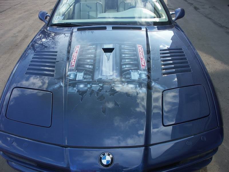 I have a friend who has 225,000 miles on his and it looks and runs as new.. This is his car..He maintains it very well but I was mistaken it has 222,222 miles on it..These pics are current and untouched or shopped.. ![]() ![]() Now the M70 motor in the 850 is rated at 300hp, with chips from Germany you can get that to 337hp and remove the 155mph limiter. Now back in the day Dinan took the STOCK engine slapped on TT's and got 525hp/600fptq.. I have another friend who has a Stg III Dinan TT (stroked to I believe 5.7litre like the Alpina 850.) That car has 625hp/660fptq. The good thing on the 850 is that the engine was made for forced induction, didn't know that did ya?. Low compression with all forged internals all housed in an aluminum block and heads. There's a member on another board I'm a Mod on who offers a S/C kit that gets you around 475/500hp and it's really in expensive, something like $6/$7K.. This is an Alpina, it had alot of engine mods and a special hood that they won't sell unless you can verify by a vin# you own one.. I'm having them reproduced for some friends who have 8 series cars.. Alpina want's close to $10K for one of theirs..No thanks, I can have it made for $1300.00 ![]() This my friends Stg II TT.. He just handed a new ///M5 his ass the other day ![]() So now you know a little bit more on the E31. Oh and when you hit 93mph the windows go up by themselves for aerodynamics If the engine detects any trouble it will shut the side that's having problems down and the car will go into a safe mode. There's so many things this car has that's just coming out now.. Hands free phone in '91? Fly by wire throttle. The list goes on..