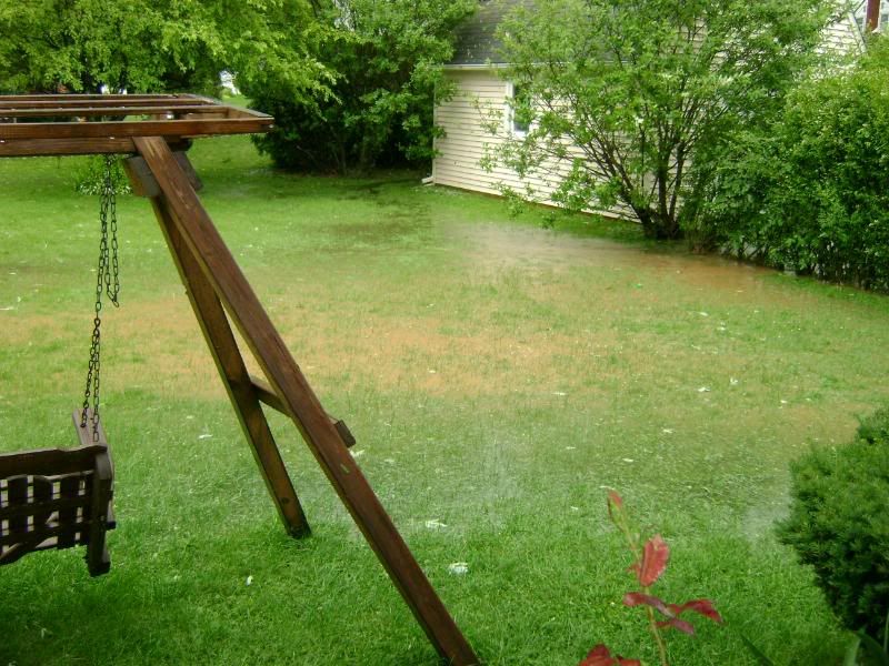 ![]() ![]() ![]() ![]() My backyard is a swamp, I won't be able to cut the grass until August: ![]() ![]() ![]() This is where my flag pole once was: ![]() And we had thunder and lightning. "What the f*ck was that?"