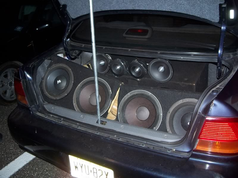 That is the worst trunk I've ever seen. Poor car. Why the hell are there speakers just hanging there. Has he ever heard of an enclosure?
