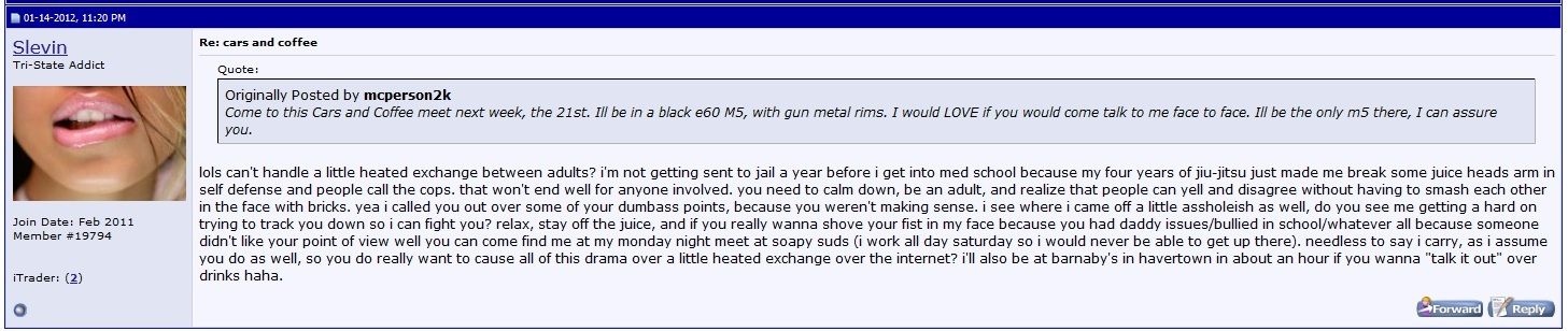 i guess you forgot the 3+ threads i trolled you in to the point where you decided to put your tough pants on and send me threats through pm's haha. only thing i do on this site is troll. i got him as easily as i got you and half of this site.