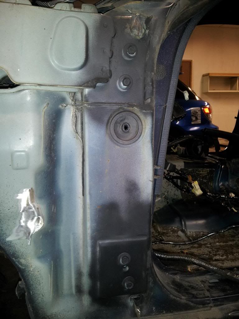 ![]() ![]() need a plate on the inside to finish the drivers side up ![]() my bead is on the right after three or so tries. not bad. i have the welder set up to stitch weld so tomorrow im gonna clean up the firewall and stick weld it and paint it and re install the dash so we can work on the cage ![]() ready for install ![]() cleaned up the door mounting points ![]()