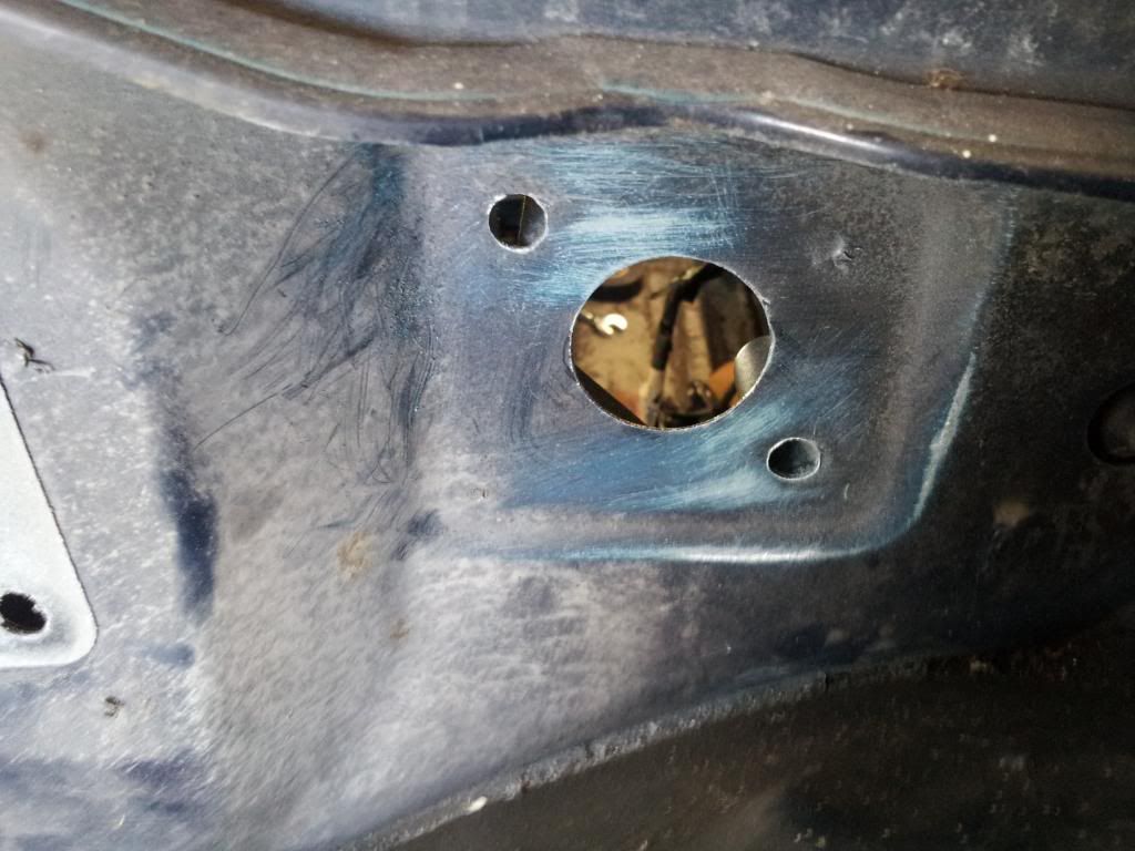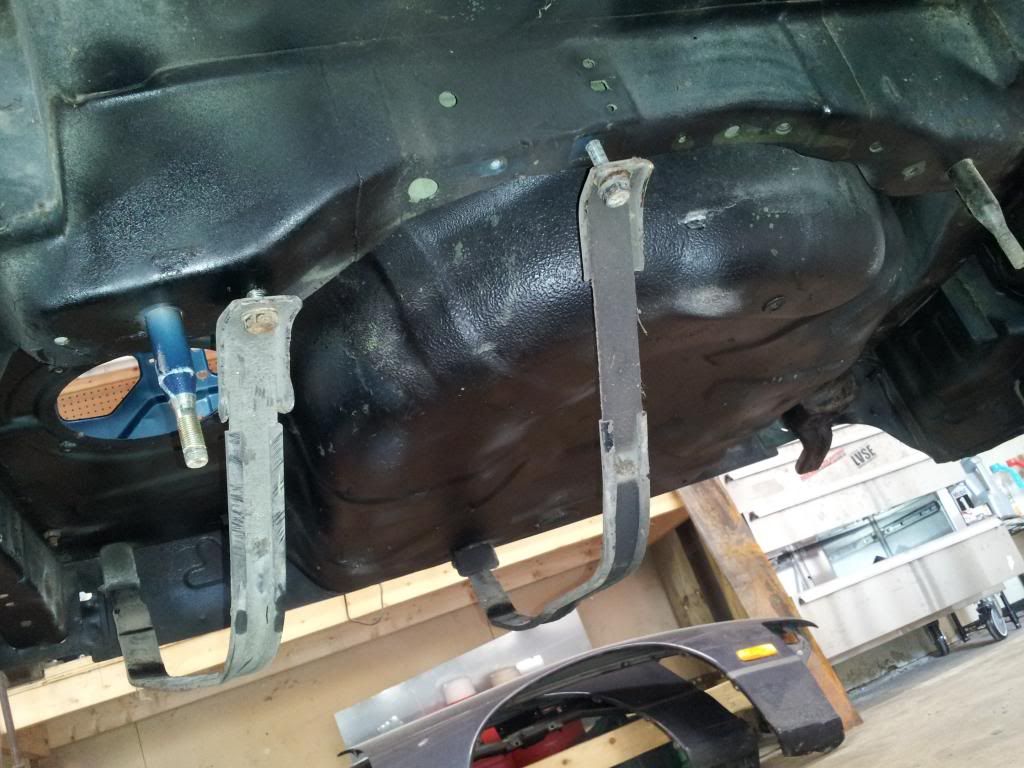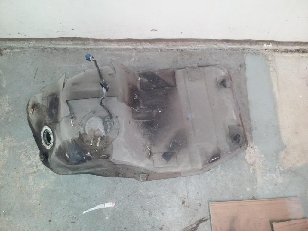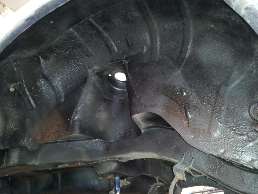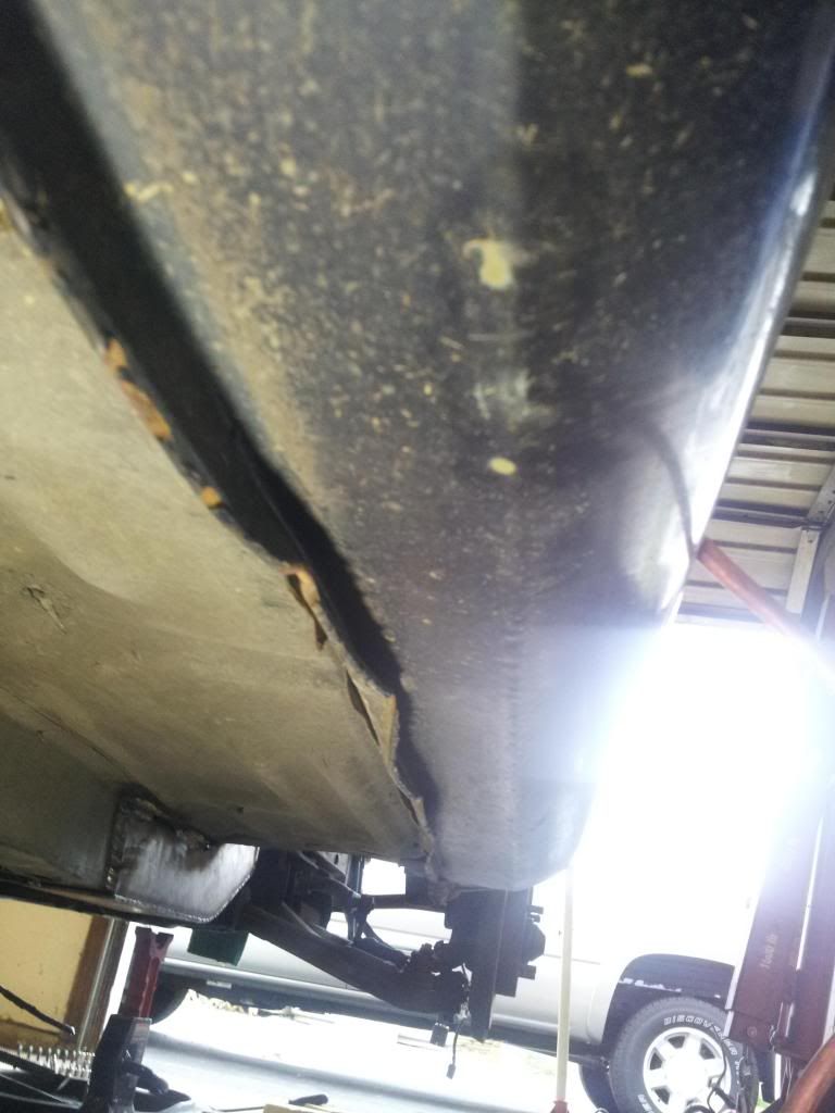 got these holes knocked in, got the body sanded down and started to fill in the problem areas, dropped the gas tank and under coated the rear of the car.