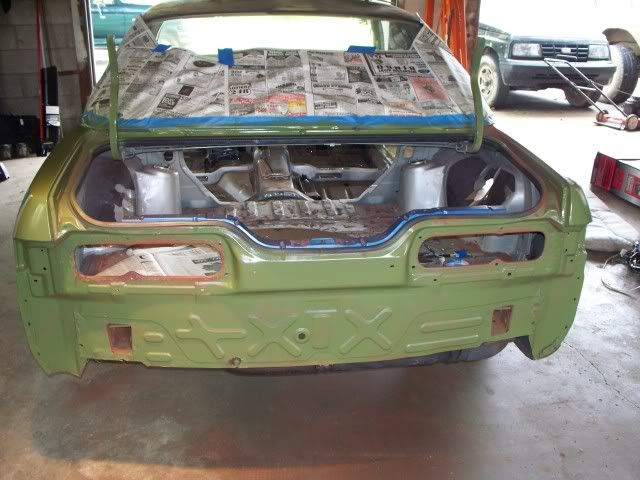 For the most part I'm happy with the way it turned out, except for the trunk I'm goin to have to sand it down further then what I did. Also along with the roof being semi-gloss black i decide to paint the headlights to match. top all primed and ready for paint ![]() ![]() ![]() Starting on the first coat ![]() ![]() ![]() Finished and outside drying ![]() ![]() ![]() A little b4 pic ![]() Most of the rear together, I didn't paint the bumper yet bc I'm not 100% sure I'm going with the stock one ![]()