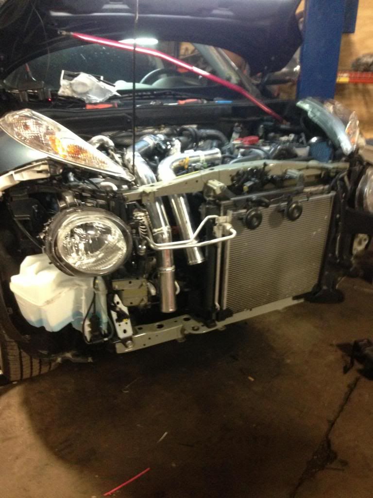 Bummed i didnt get to make it by saturday to check it out, but i think by blacking out the bottom of the fmic and/or adding a lip would look awesome. Post up a better engine bay shot now that its done!