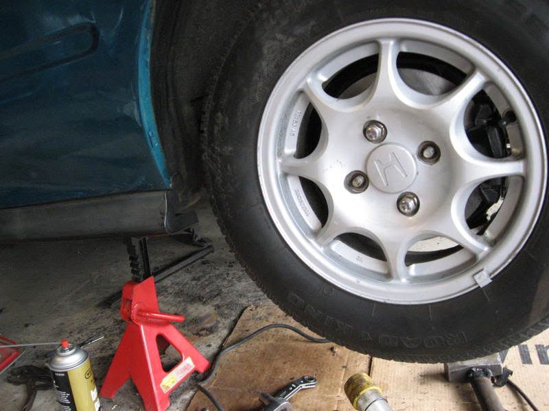 Collected some Si interior parts including door panels and a rear seat, and a new steering wheel (only part that isn't installed yet), to upgrade from the not-so-nice VX parts. Before/after door panels (before is on the right): ![]() Interior all upgraded: ![]() ![]() And now for the biggest Si upgrade... ![]() Yup, rear discs (they BARELY fit under the VX wheels). Found a rear brake setup of a LOW mile 99 Si for about a $60 trade with NIB rotors/pads already installed! Picked up a disc brake proportioning valve and installed that as well. Also replaced the front lower ball joints, and the front rotors/hawk pads all in one weekend, and WOW, after that weekend I am now beat. Lots of rusty bolts gave me a lot of trouble, otherwise this should have been an 8hr job at the very very most, but it was a decent amount more.... The end result is a car with SO much better braking. I was kinda scared it wouldn't be worth it, but wow, such a difference between the nearly new drum brakes compared to the rear discs that I just put on (aren't even fully broke-in). It's also a huge upgrade for the bushings in the rear since the old trailing arm bushings were 100% ripped as well as all the other bushings that were attached to the trailing arms (253k miles will do that). I do have some carnage pictures of all the parts that were cut/mangled to get them off, not sure if I want to open them up to the public to see.. Kinda scary. HAHA Hopefully I'll get some better brake upgrade pics, because the equal sized discs front/rear look so much better than those puny drums that used to be in the back.
