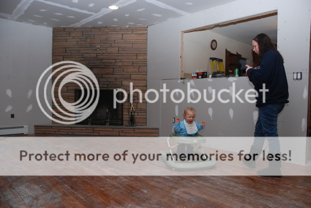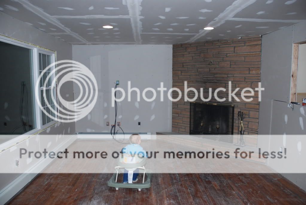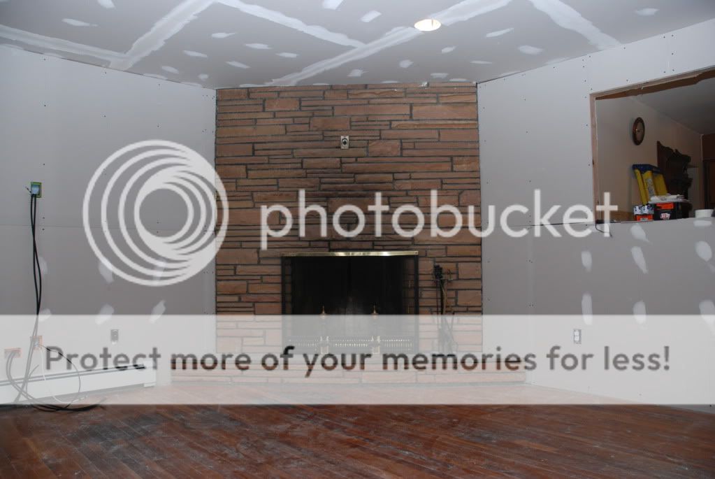well all the drywall is up and tape and spackle has begun. so of course when me and the wife cleaned up last nite we both looked at the fireplace and thought that the stone wall is a bit big.. so we came up with an idea of framing it out and drywall it. so i did a real quick ms paint edit to get an idea of what we want. that pic is the last one.
