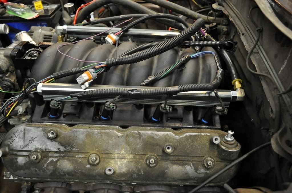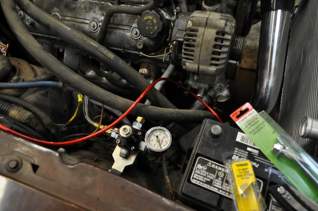 me and corey got a bunch of **** ready today, got a fan, oil, filter, coolant, the 90degree drill adaptor from my friend ryan to drill the pan, a 3 inch tbolt, a bunch of vaccum hose... and some more parker push lock to do the trans cooler, gunna pickup a trans cooler at A&A tomorrow i think, and get something to tension and space the alt where i need it... then do the trans cooler lines and start filling that and getting this thing ready to fire.