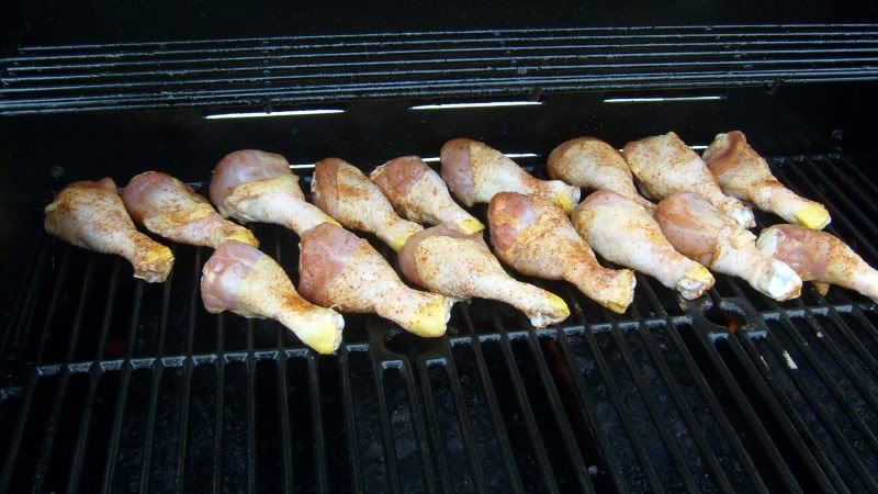 Mix drum sticks or wings with this stuff. ![]() Put them on the grill on medium heat. ![]() Cook them until they are a nice brown color and them put BBQ sauce on them of your choice. I like: ![]() Put the drums or wings on the top rack, set the two middle burners to low and turn the side burners off. Close the lid and allow them to cook for another 15-20 minutes. This allows them to get the flavor of the BBQ and it also makes them very tender.