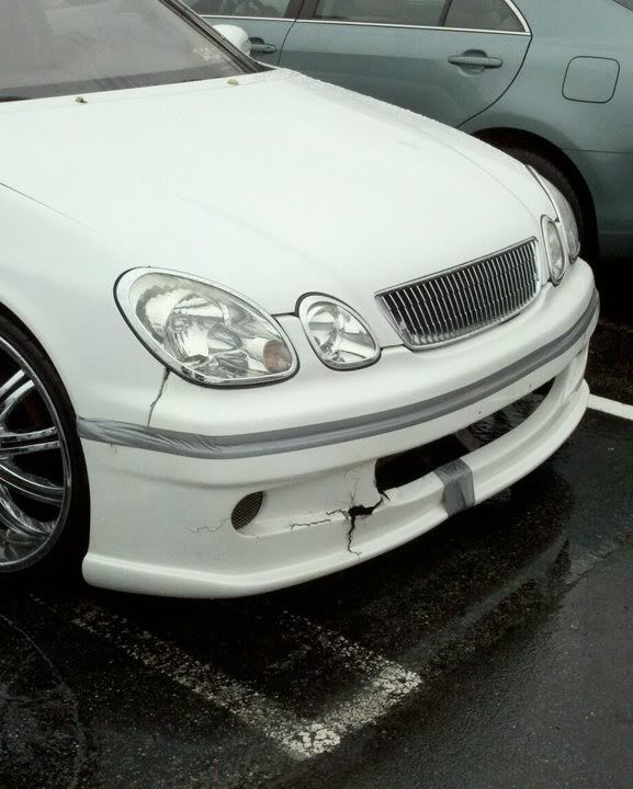 cheap exploding duct taped body kit, check. chrome trim, check. pepboys special chicken wire "grille" inserts, check. yup boys we got a ricer. |