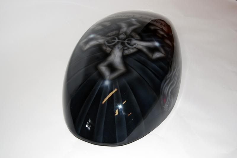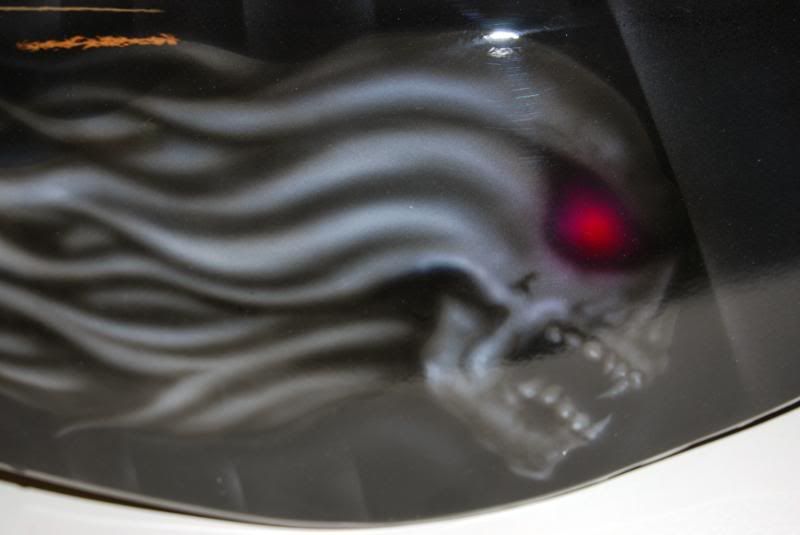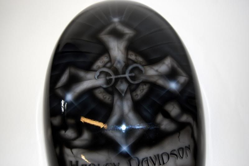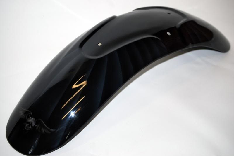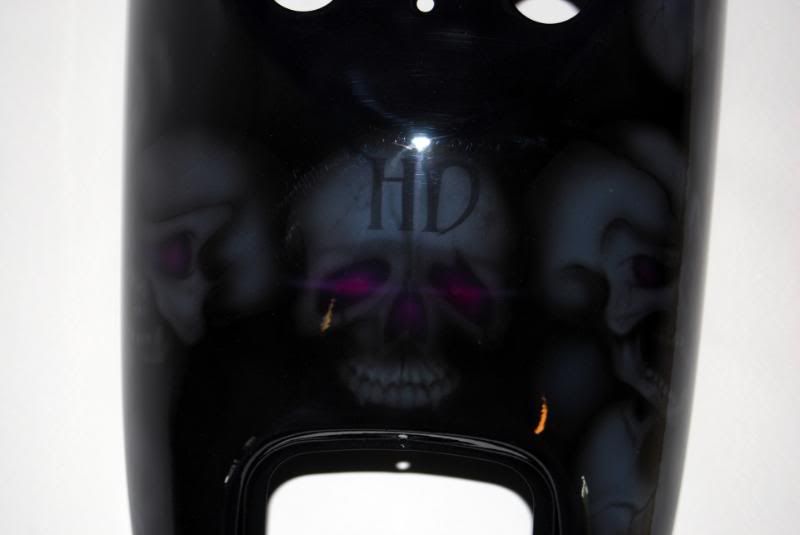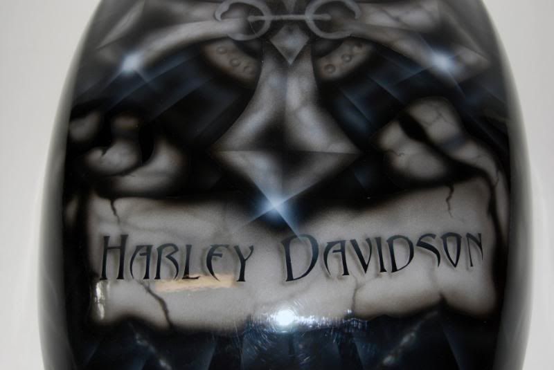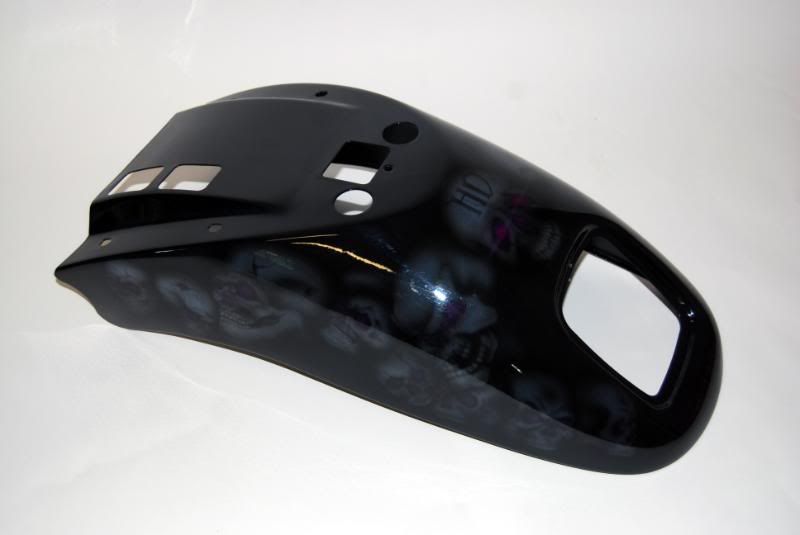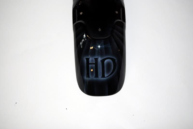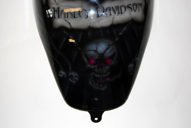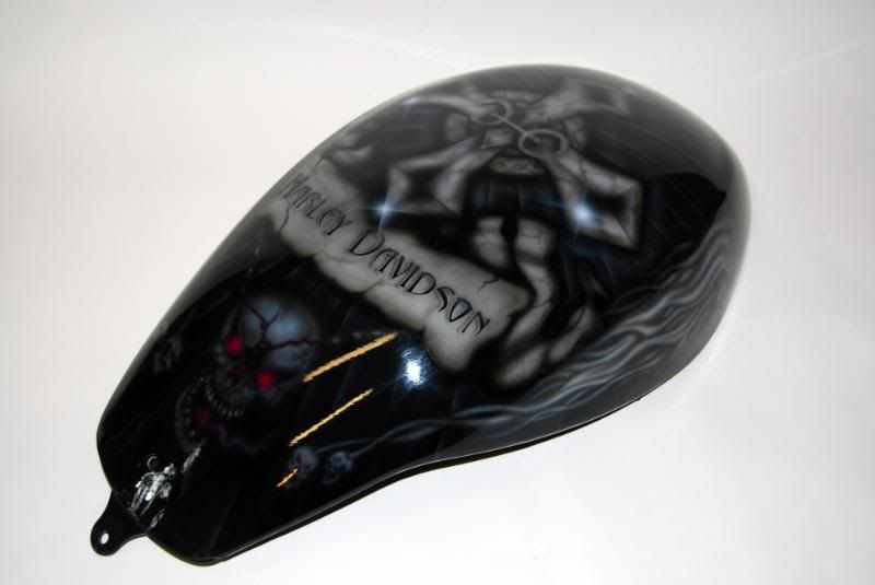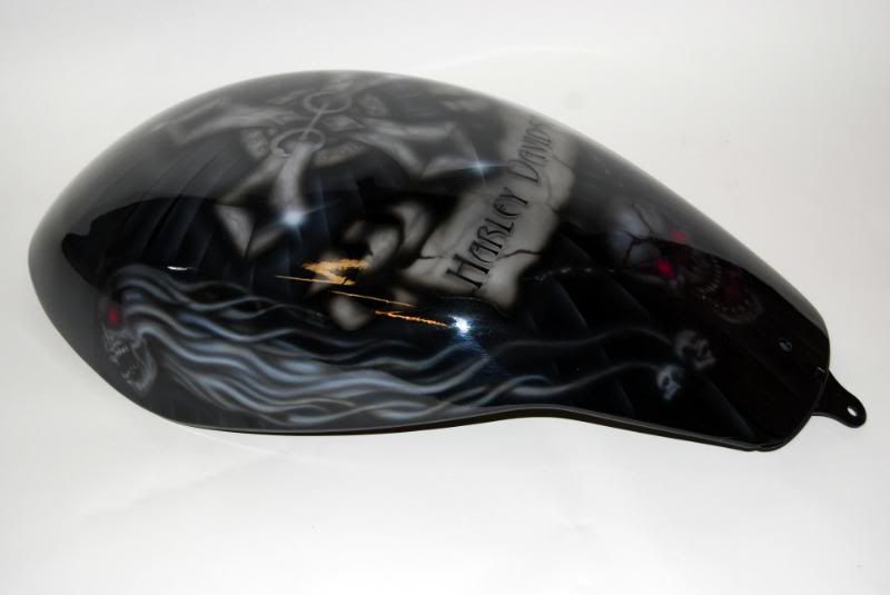 harley tank and fenders are finished base color was powder coated mirror black and air brush work was done by ( my brother) Inner city air brushing who are a part of lpc now. check out his myspace for more of his work.