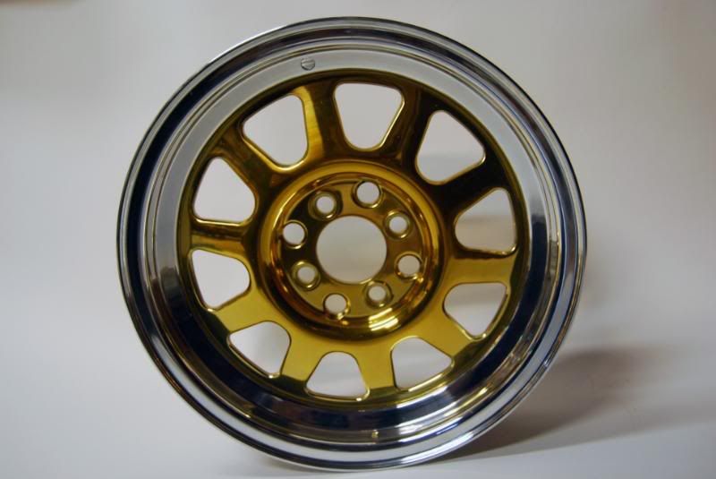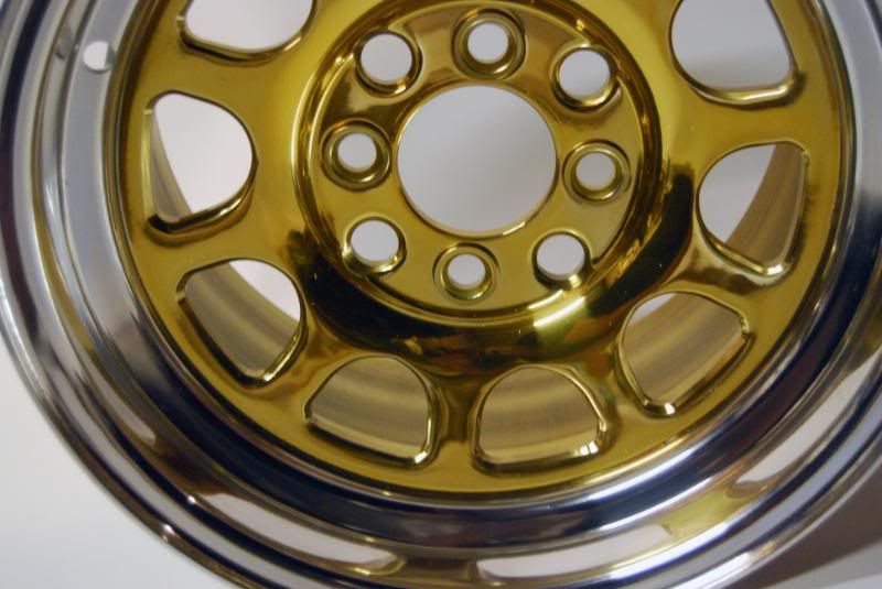 heres a set of wheels for a customer that wanted the face of the wheels polished. Before ![]() ![]() And after ![]() ![]() ![]() add a clear coat for longevity of the polish and your set. Please call or pm for polishing qoutes. Candy colors look really good with a super chrome base but nothing beats the look of a candy color over a polished part. Heres a set of wheels we did polished then added Gold Sparkle candy over it the polish. ( the gold candy has a gold flake in but i cant capture it )![]() ![]() ![]() ![]() ![]()