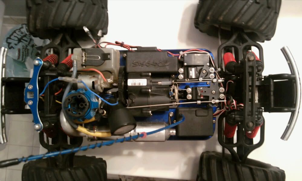 I have a monster truck down in the basement. I think its a Revo with a race engine? Its got 2 speeds, its pretty cool. I traded a computer monitor for it.. When I got it, I beat the living snot out of it until it wouldn't idle on its own... Sat in the basement for 2 years, last year I tried to use it, I could get it to turn on but it would smoke right away... so I drove it anyway (lol) and I think the snow killed the servo's... I been planning on tinkering with it but I haven't had time.