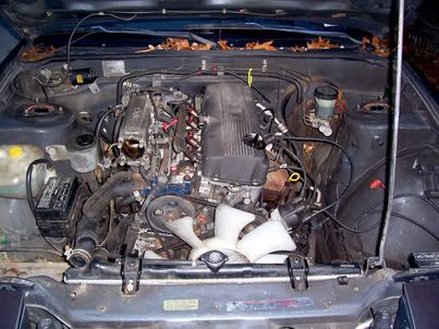 (Whats Going In) Interior: custom radio relocation Ichibahn shift boot "NISMO style" suede steering wheel HKB steering wheel hub NETAMI quick release Exterior: Chuki front bumper JDM kouki 180SX tail lights JDM power folding mirrors JDM 180SX side markers lifted hood Engine: KA24DE swap (early '95) cold air intake custom Falcon 6 puck clutch kit ACT clutch bearing A/C removal aftermarket dual tipped muffler NISMO motor mounts NISMO tranny mount B&M short shifter [/b]Suspension: Tein S-tech springs Tein tie rods (inner and outter) KYB GR-2 gas shock/struts front strut tower bar rear strut tower bar In Car Electronics: Eclipse CD8443 radio Pioneer 4x6 fronts JBL 4x6 rears custom 5" screen setup Quote: