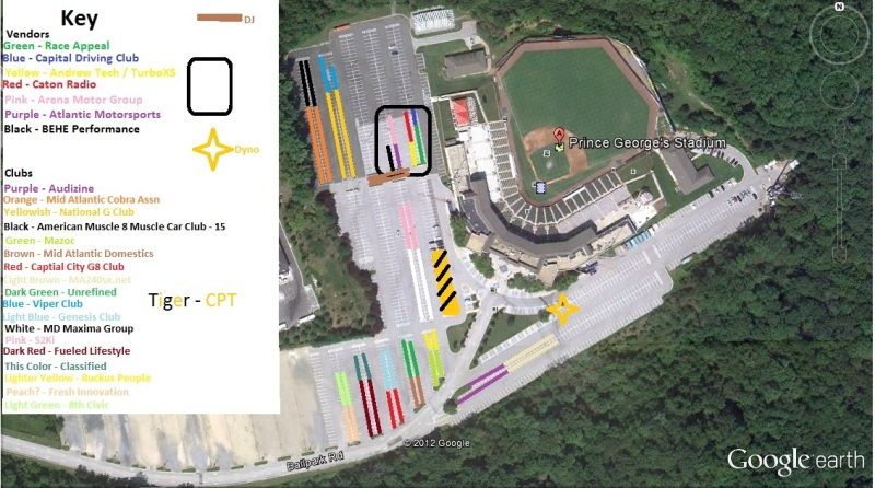 Roughly 2.5-3 hours from Philadelphia, PA, but worth the drive. ![]() ![]() 2012 University of Maryland Spring Meet for Charity hosted by College Park Tuning • Thousands of different cars • Dyno pulls • Live DJ • 50/50 Raffle • Raffle Prizes We will be asking for 1 non-perishable food item per person and $1.00 entry fee. If you forget to bring an item or prefer not to, we will collect a $2.00 entrance fee/donation on your way into the lot. All the proceeds collected from admission, and the 50/50 raffle are going to be donated to Martha’s Table (http://www.marthastable.org). Location Prince George's Stadium Bowie Baysox *Almost 2000 parking spots Directions to Bowie Baysox Layout of the meet *Expect heavy traffic, we are sorry for this inconvenience and will be trying to move people in/out of the meet as quickly as possible* Date Sunday, April 29th, 2012 Time Noon, 12:00 pm. We usually start packing things up at 6pm Food Food will be served by the Baysox stadium staff. It will be typical grill food (burgers/hotdogs). Dyno • $80 for 2 - 3 baseline pulls w/ A/F and printout. FWD or RWD only • If you are interested in dynoing your car, please send an email to collegeparktuning@gmail.com or follow this Dyno Signup. We are trying to have people pre-register for the dyno. Reserving Space The people have spoken and if you want to reserve space for your club or group you need to contact us ASAP and give us an accurate head count by April 22nd. We require the entrance fee of $3 per car paid in advance when reserving spaces, but we ensure that clubs get a set amount of spaces together and we will give those clubs priority admittance. Basic Rules 1. Be respectful of other peoples cars. Please do not touch a persons car without their consent 2. No alcohol 3. No scandalous attire (this is a family event) 4. Chairs are permitted everywhere but no taking up parking spaces with them 5. No saving spaces (group or forum contacts us before hand at collegeparktuning@gmail.com if you would like to organize rolling in as a group and have a select number of spots reserved) 6. No burnouts or anything stupid. Police will be at the event and cameras are rolling 24/7 at Bowie FAQ thread FAQ Thread If any shops want to sponsor this event and have space just email us @ Collegeparktuning@gmail.com