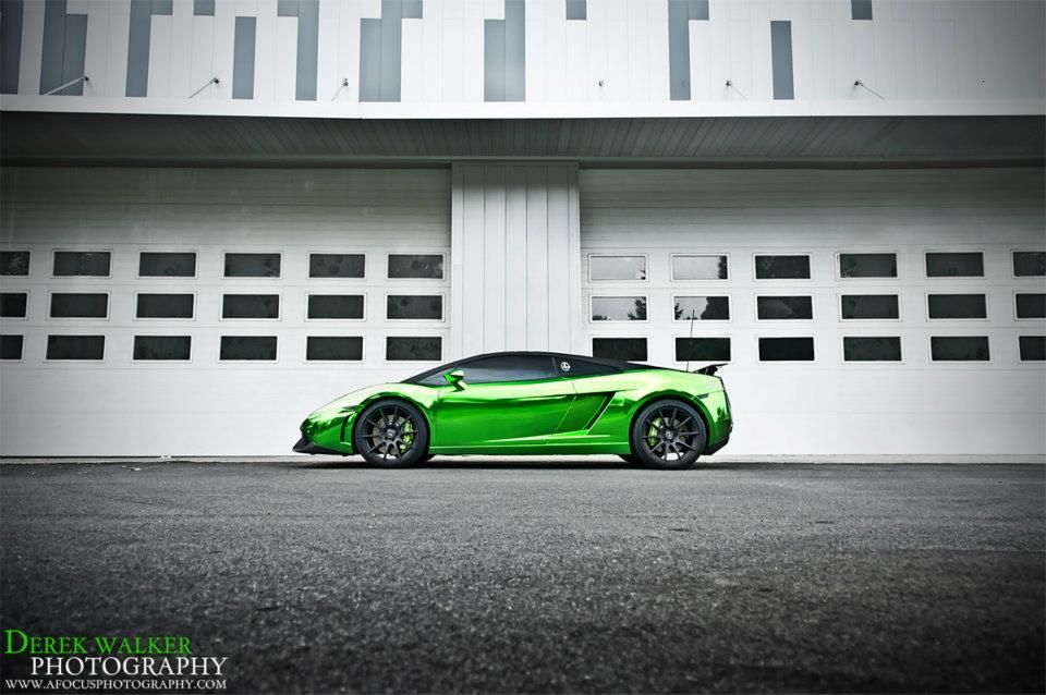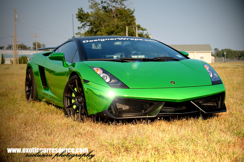 after some negotiation on the terms of the sponsorship and what he wanted out of the car, he dropped it off with me and we got to work tearing her down. She came in bone stock and over the next few days we performed a complete transformation. The front bumper was replaced with an LP570 Superleggera style piece, the rear spoiler was also replaced with a Superleggera carbon fiber unit, the stock painted wheels were swapped out in favor of Forgestar CF10 19" wheels, and the full exhaust was re-done... we bypassed the primary cats, got rid of the muffler and put a lightweight, carbon fiber unit in its place, lastly the car was off to Designer Wraps in NJ for the first chrome green wrap job in the country.. needless to say, this should turn a few heads on the road ;) overall i was really happy with how the car turned out; she shoots flames, is obnoxious, runs great and turns heads! here is how she started, stock wheels, bumpers, spoiler, exhaust: ![]() ![]() ![]() then she got some new bumpers, the exhaust, wheels, and stickers ![]() ![]() ![]() ![]() ![]() ![]() ![]() then she got the wrap! ![]() ![]() ![]() ![]() i will be in LA for the Bull Run and Concorso Italiano and will add some pictures while im out there! thanks for looking.