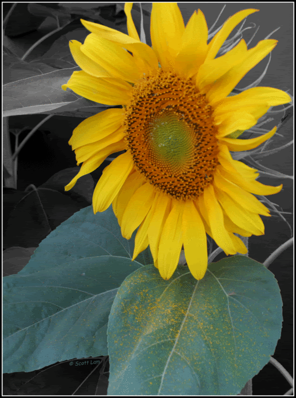 Did you take some of the color out of the Sunflower shot? The fire works shot is cool, but a little too dark. I think It may have looked even cooler if you framed just the sky and fireworks and not the fence and house. How much post processing went into these shots? and What are you shooting with?
