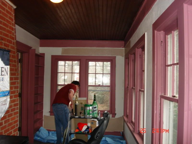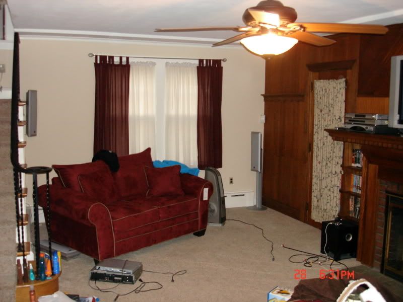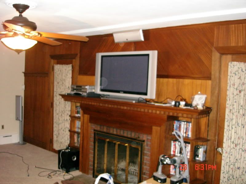 Awsome Jay! Was the 'bar room' really pink before or is that primer? The house looks great, and I like the TV over the Mantle. Good idea.