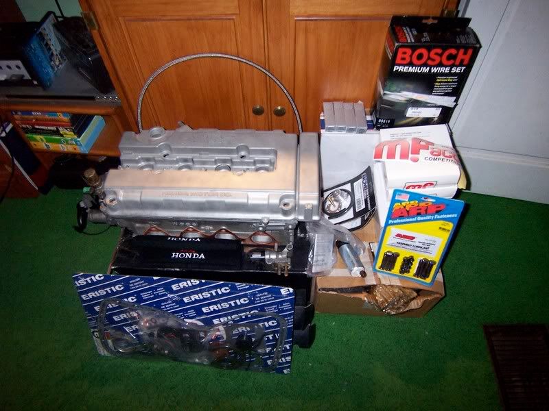 I'm Dan, just found out about this forum a couple weeks ago, so I thought I'd join. I drive a 1990 Acura Integra GS, and here it is: I work at Mercedes detailing, and you would think i'd be a perfectionist about my own car...sorry, this pic was taken after not being touched for almost 2 weeks during a snow storm...lol ![]() old skool....when it was clean.... ![]() ![]() Current Mods: AT-MT Conversion -->Clutchmasters FX100 Clutch/PP, Clutchmasters 8 lb. Flywheel, B&M Short Throw Shifter, ITR Shift Knob (not pictured) VIS CF Hood Sprint Springs on new OEM Struts A lot of Audio/Interior Mods... I blew a head gasket last friday, so I'm getting LSVTEC done all at once this weekend...I ordered $1000 in parts on monday to finish up accumulating, and now i can get to work! B18A1 Block B18C1 Head-Ported/Polished Intake Side, 3-angle Valve Job JDM B18C Camshafts Mfactory Cam Gears B&M FPR B&M FP Gauge All-Ignition OBD-1 Distributor NGK Spark Plugs Bosch Plug Wires Blox Port-Matched Intake Manifold Maxbore 62mm LS Throttle Body Full Head Gasket Set J-K-Tuning Chipped P28 ECU (Crome) and OBD0-OBD1 Conversion Harness ITR Oil Pump, Water Pump, Timing Belt, Tensioner GSR Upper Rad Hose New IACV Hondata Intake Manifold Gasket Megan Racing 4-2-1 Header....crap basically. Steel Braided Oil Line and Fittings Dowel Pins installed Holes drilled/Plugged on head etc....probably forgetting things, but this is my 2nd time through being powdercoated Hot Pink w/ Black Letters ![]() Came today! ![]() The pile....always growing ![]() In the summer I plan on doing minor things.... AN-R Header SMSP High-flow Cat RS*R Exmag Exhaust PWJDM CF Intake RC 310cc Injecters Walbro 255lph Fuel Pump (already have) Tune Body Work/Prep For paint paint. the end....hope you like