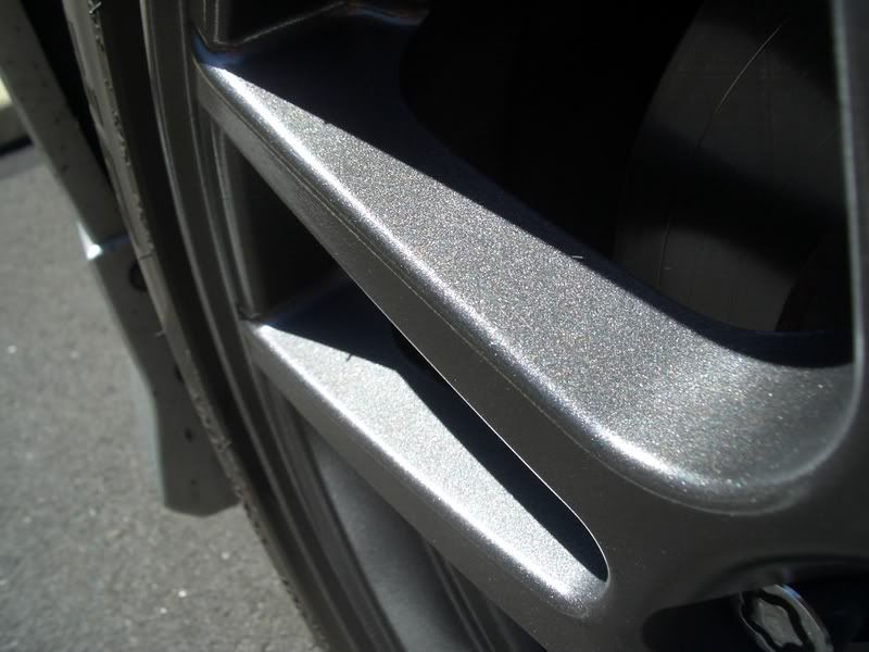 it looks 10x better in person. when the sun hits it, its super metallic. i used this.....can be bought at pep boys and i'm sure like 50 other places. its about $7 per can...obviously mine was the graphite color. haha i know a bunch of people with red wheels, i'm not a fan of it.