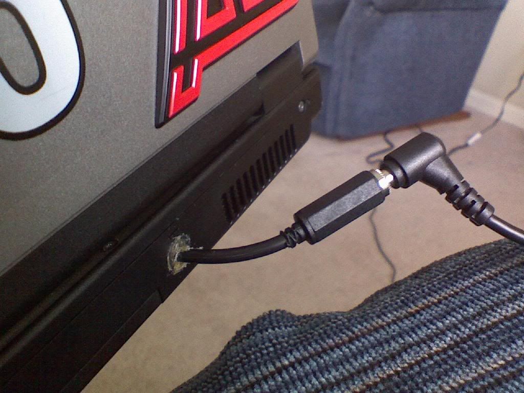 to make you feel a little better.... the "tail" they added to the laptop will actually work better then the original jack. normally the power jack going straight to the mother board creates too much stress in that location and the jacks or the soldering points on the board break. moving that connection outside of the case, makes for a more reliable setup