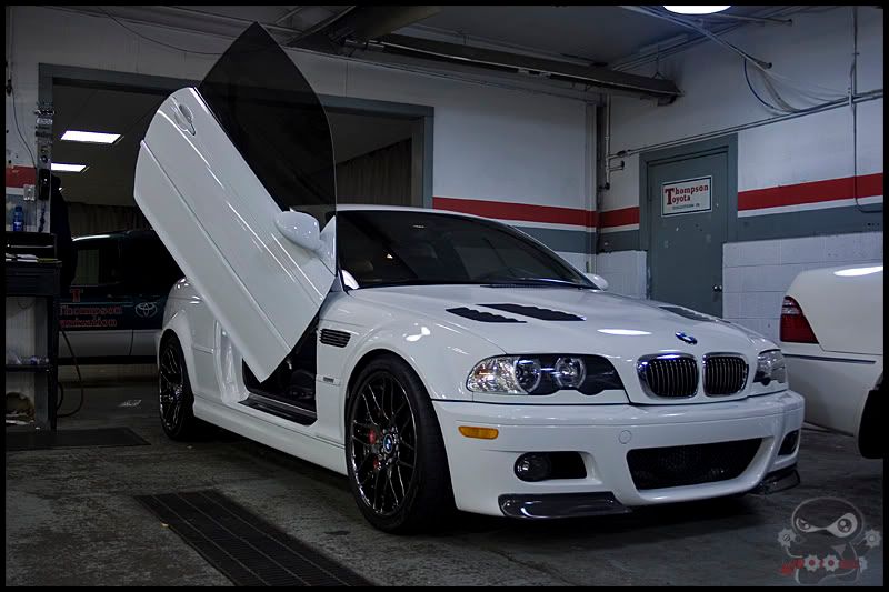Firstly, though not a fan, I can say that car has a lot of high dollar mods. The lambo doors are gay, but that thing has dinan brakes, dinan supercharger kit, real M3 competition wheels, the vorsteiner hood, CSL trunk lid, acs front it looks like, acs rear, acs roof spoiler.