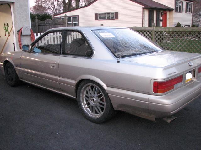 1990 Infiniti M30 aka F31 or the Leopard in JDM Land Here she is!! Car already has: Front s13 suspension conversion w/j30 brakes 5-speed manual conversion Welded R200 rear diff. JIC rear coilovers Gutted interrior Here are a few bits I've picked up that are about to be installed. Wicked tuning inner and outter tierods plus a 5mm spacers installed into the steering rack for UBER-ANGLE! 5-lug conversion for awesome wheel selection + R32 Big Boy brakes - 4pot up front + 2 pots in the rear with drum E-brake = ![]() Ksport Control Drift Series Coilovers custom valved to 10/8k spring rate. These will be in this week. better cooling!! And the piece de resistance: I actually can't wait to have this puppy ready. Heres some details on the engine: 1997 S13 SR20DET Engine stock bottom end SR head was ported and polished, butterflied by Jim Stewart Jim Wolf Valve Guides OEM NEW Valve's and Valve Stems Brian Crower Springs and Retainers Brian Crower 264 Cams Apexi headgasket ARP headstuds Megan Racing Manifold GT2860 aka Disco Poato Greddy Intake Manifold 740cc Tomei injectors Brown and Miller Racing custom Turbo lines New OEM engine harness was converted by Enjuku Racing Exedy Stage 3 Clutch Fidanza lightened flywheel The car will eventually look like this: ![]()