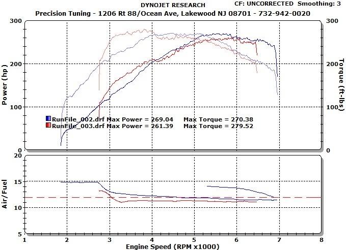 first run .374 1.852 5.541 8.584 81.30 11.169 13.356 104.16 .537 1.924 5.667 8.703 82.34 11.301 13.479 104.37 Vid for this run http://www.youtube.com/watch?v=agPH1pWR4uw[/quote] Once i had the mounts fixed Precision Tuning offered to dyno my car for a baseline for stock STIs. It put down 269whp/270wtq, Rich the owner, was shocked how much power it put down and kept saying i should leave it stock.....but what fun is that. LOL LOL. This is my graph vs a 07 with ots cobb map. My run is the blue one [/QUOTE]So over the last week i installed the parts i've been buying. wraped ebay downpipe coated invidia uppipe injen cai walbro fp colder plugs aem tru boost 170 thremastat and thats it....stock cat-back Had Jr at THE SHOP tune it today for a pump map and a torco drag map. I'am not 100% what the pump numbers were but i think they were 300whp/330wtq on their dyno dynamics w/ a 1.1 correction factor on the torco map it put down 320whp/375wtq w/ a 1.1 cr.....with a 1.2cr which was recently proven to be within 5hp/tq of a dynojet it put down 350whp/405wtq. ![]() Blue/black runs are how i rolled in with these mods on the stock rom at wastegate boost about 10psi blue run is w/ 1.1cr black run is w/ 1.2cr red/green is Jr's torco map at 22psi red w/ 1.1cr green w/ 1.2cr Jr said that the stock cat-back is killing me uptop but for now I really like how quiet it is. The car will see the track with both maps within the next couple of weeks but i bet it traps 108+ on pump and 111+ w/ torco some pics ![]() ![]()