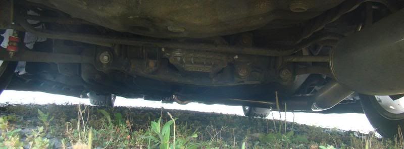 its controlled by a shaft from the steering rack...all the way back to a differential/rack, with tie rods comming out to the hubs.. you can just make out the 4ws rack in the middle... and if you look close you can see the tie rods going out each side. the shaft from the front goes over the gas tank and above the exhaust all the way down.