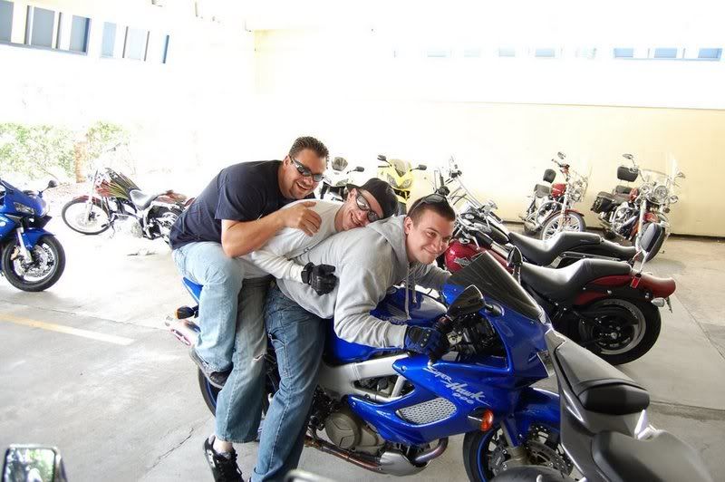 lolz, there where two kids around me that were riding tandem on a sport bike, thats worse than on one of the harley land yachts.