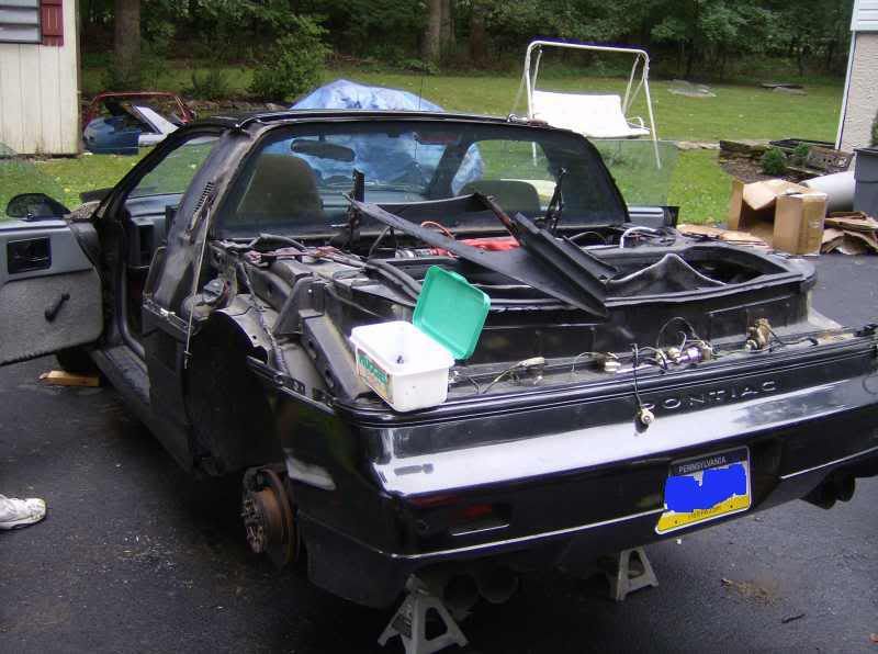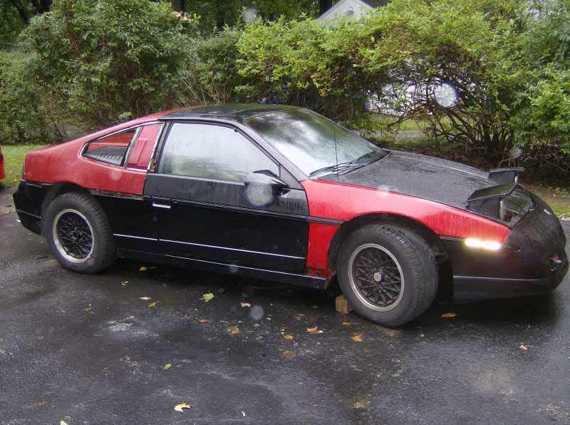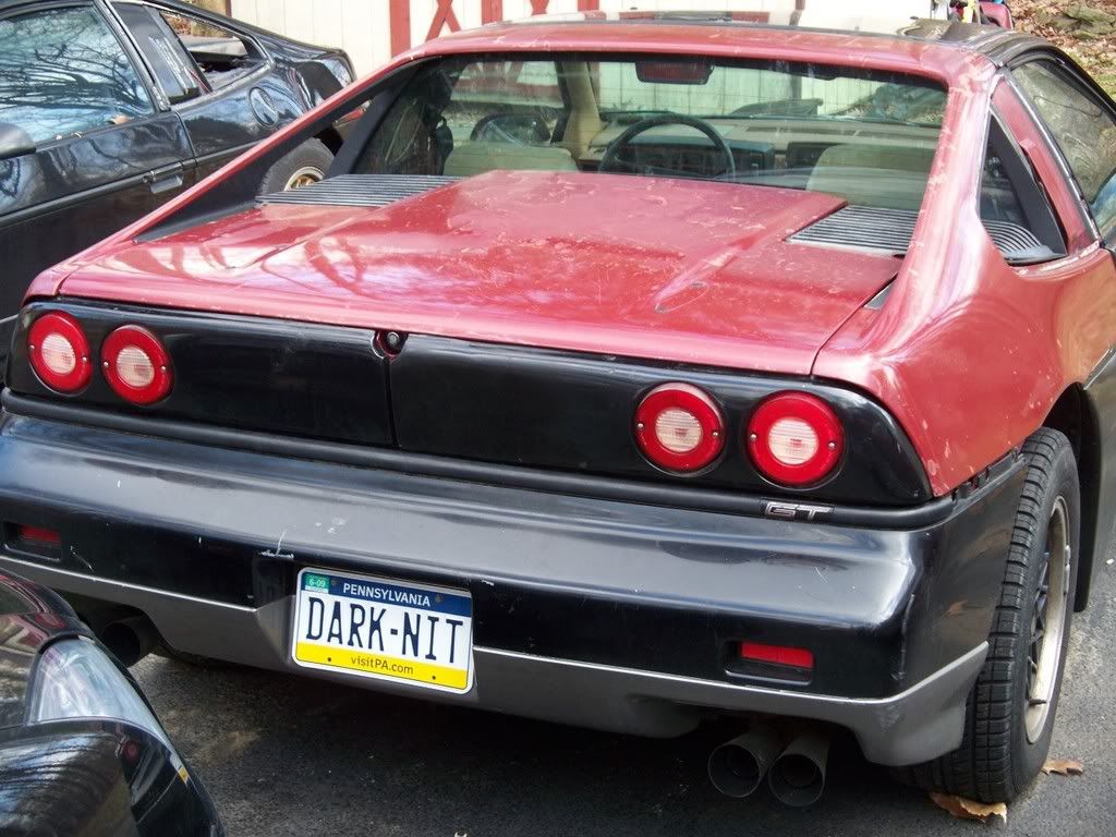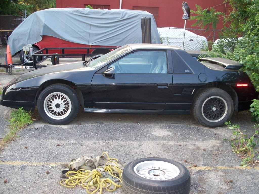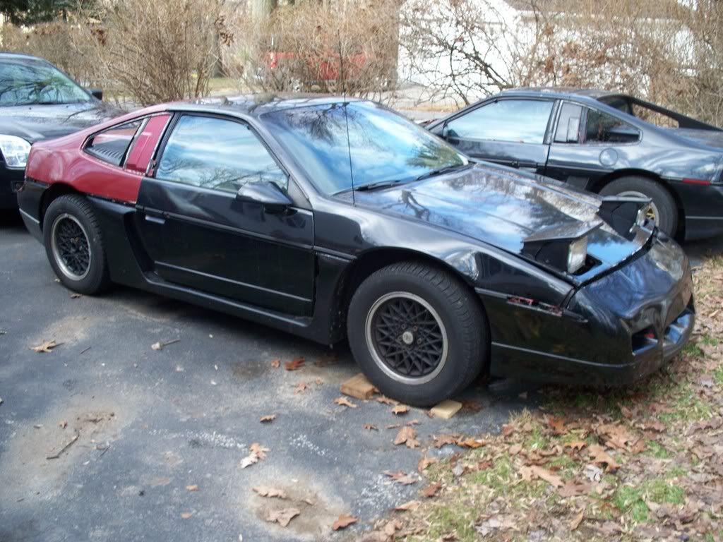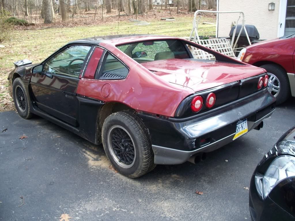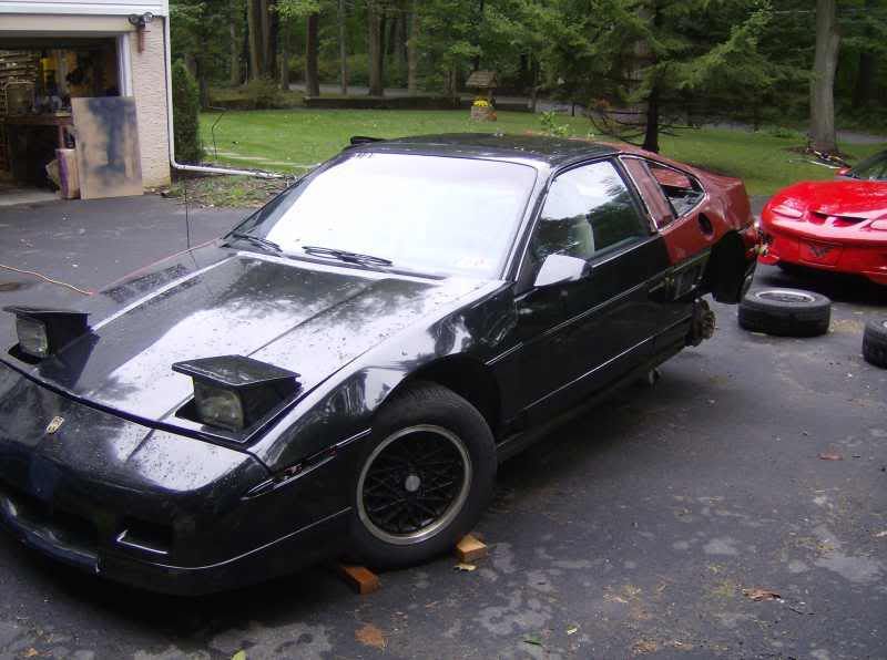 http://www.fiero.nl/forum/Forum1/HTML/072758.html the car started as an 86 notchback SE V6 ![]() ![]() ![]() now im not a big fan of the notch back just because it doent look sporty enough to me so heres some of the tear down pics ![]() ![]() ![]() ![]() ![]() this is the whole fast back clip set up except for a few small parts the black one isant mine but it shows the part up close. and it also show howe much of a pain in the @$$ they are to do the conversion for them. ![]() ![]() ![]() than the finished product after the fast back conversion ![]() few weeks later a buddy of mine decides to go pick up an 88 fiero in south carolina and while down there i found one of these for a very good price normaly $600 but i got it for $300 and its in brand new shape never been pinted ![]() few months later i come across ferrari taillights normaly $375 for the whole set up got them for $175 ![]() than surfing pennocks fiero fourm i was lucky enouh to find a set of these $400 before shipping got them for $200 ![]() ![]() ![]() after this i was kinda etting bored with the stock grey interior so i chaned it from this ![]() ![]() ![]() over to this without any kind of spraying ![]() ![]() now here it sits ![]() ![]() ![]() ![]() this is very close to whats its going to look like. mine is going to be a gloss black though.
